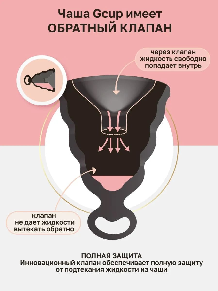 Представьте: ни одной капли беспокойства, только свобода и комфорт в каждом движении. Менструальная чаша GCup с инновационной защитой от протечек на 10 мл — это нежная революция в твоем интимном мире. Забудь о прокладках и тампонах, окунись в волну уверенности и свежести, где каждый день становится праздником твоей женственности. С GCup ты чувствуешь себя королевой — защищенной, стильной и полной сил для ярких приключений!