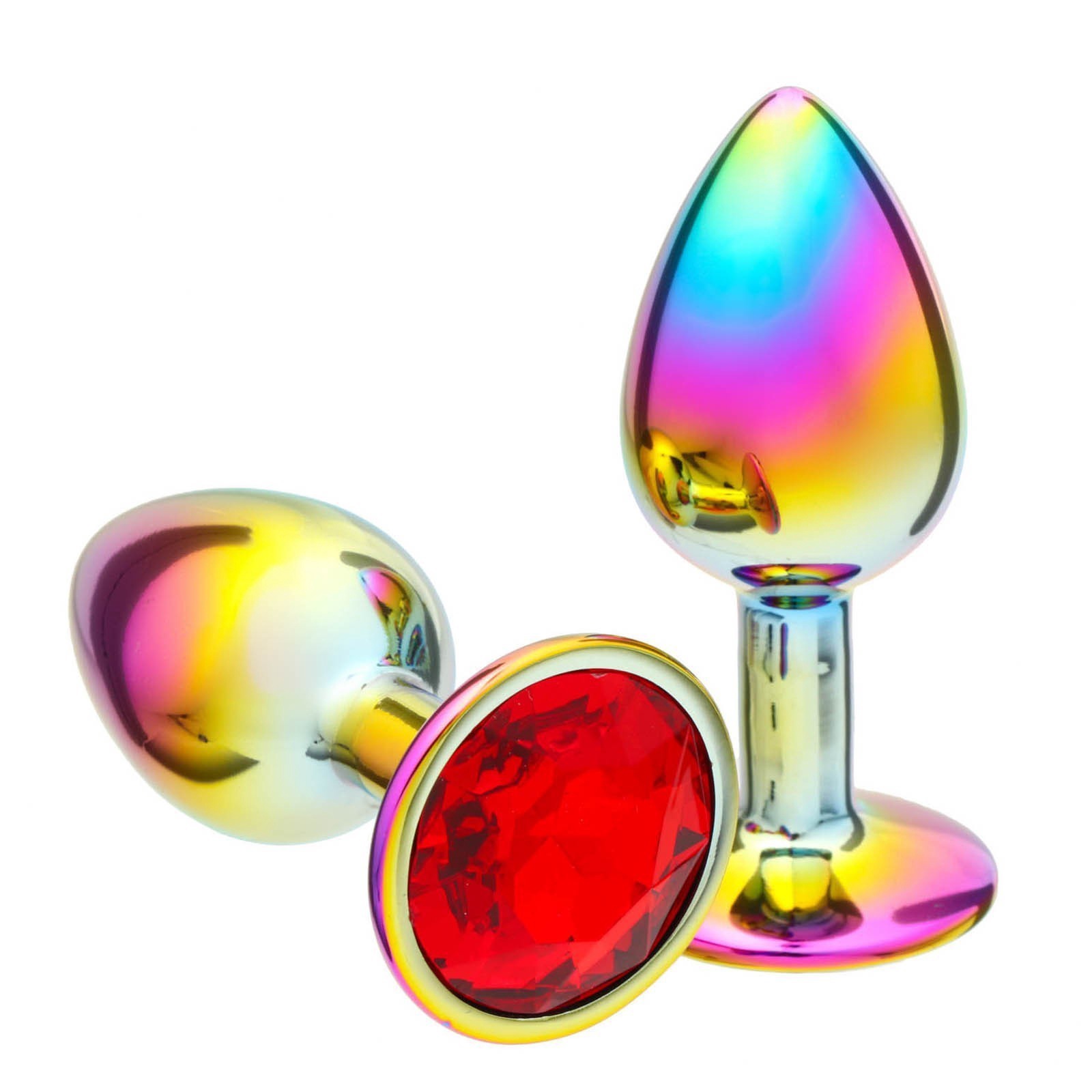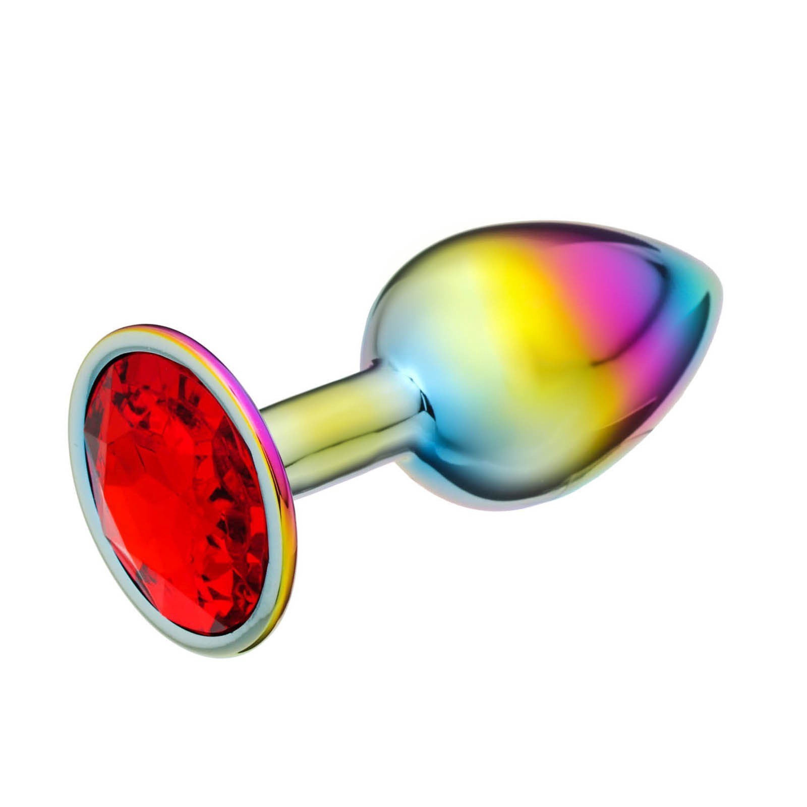 Анальная втулка Оки-Чпоки с кристаллом, S Ø 2,8 см, хамелеон/красный