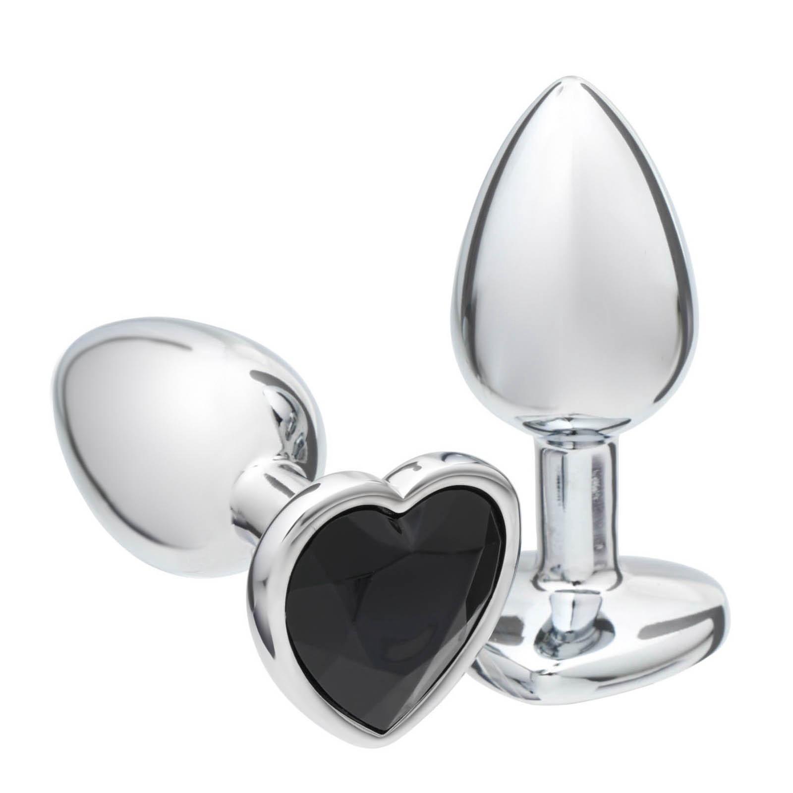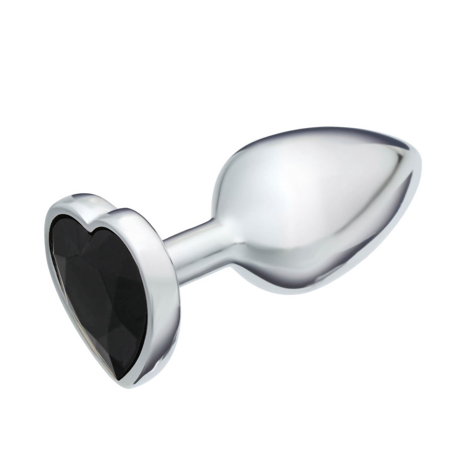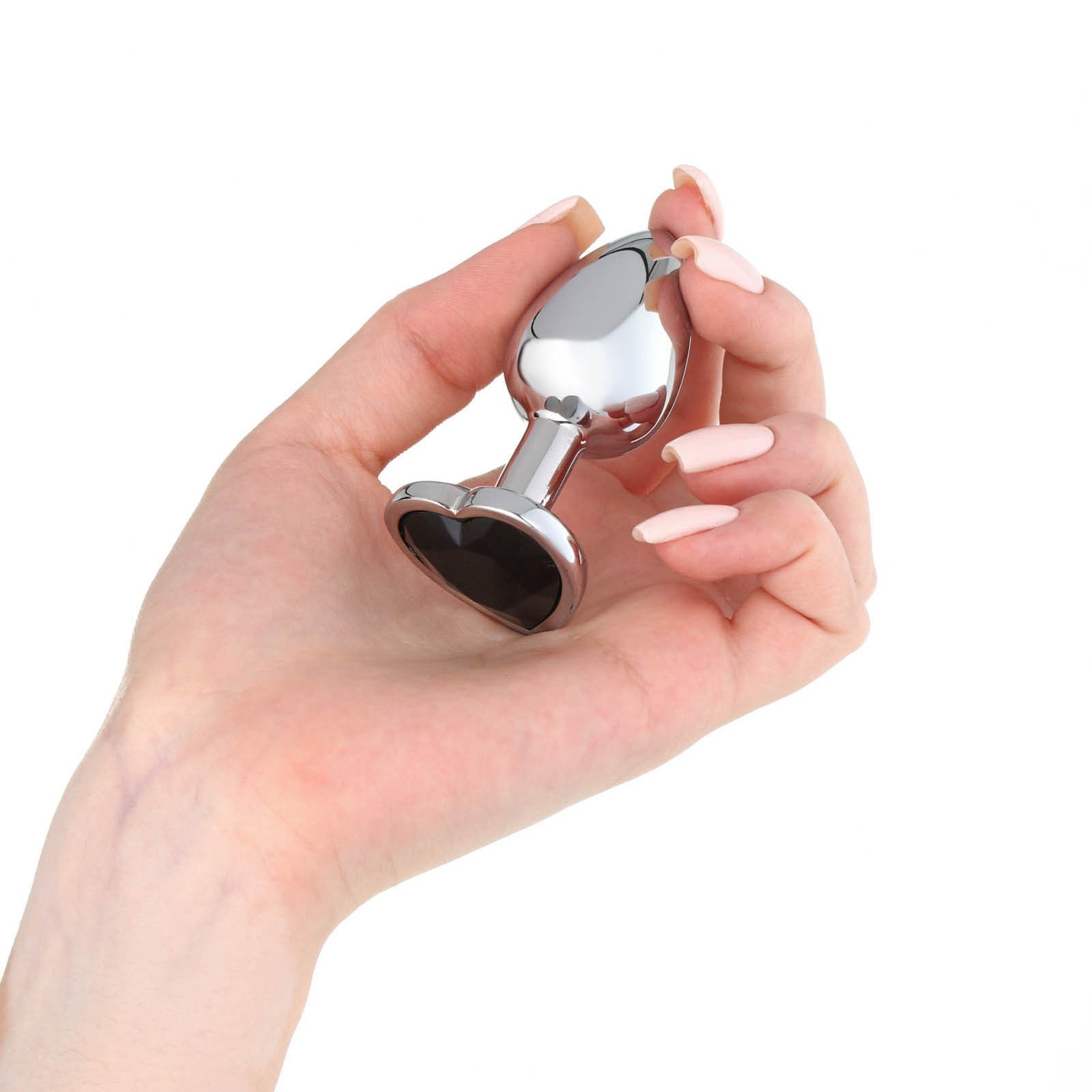 Анальная втулка Оки-Чпоки с кристаллом в форме сердца, S Ø 2,8 см, серебристый/черный — твой билет в мир незабываемых ощущений!