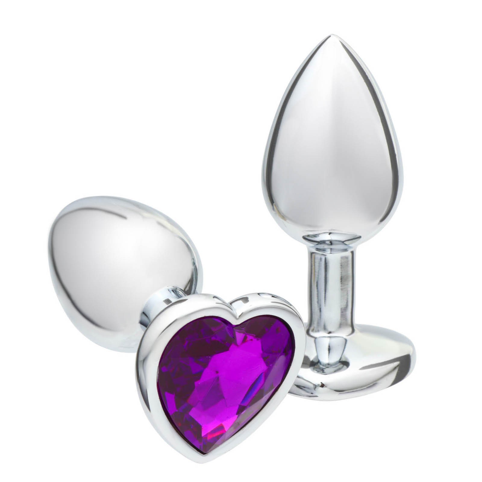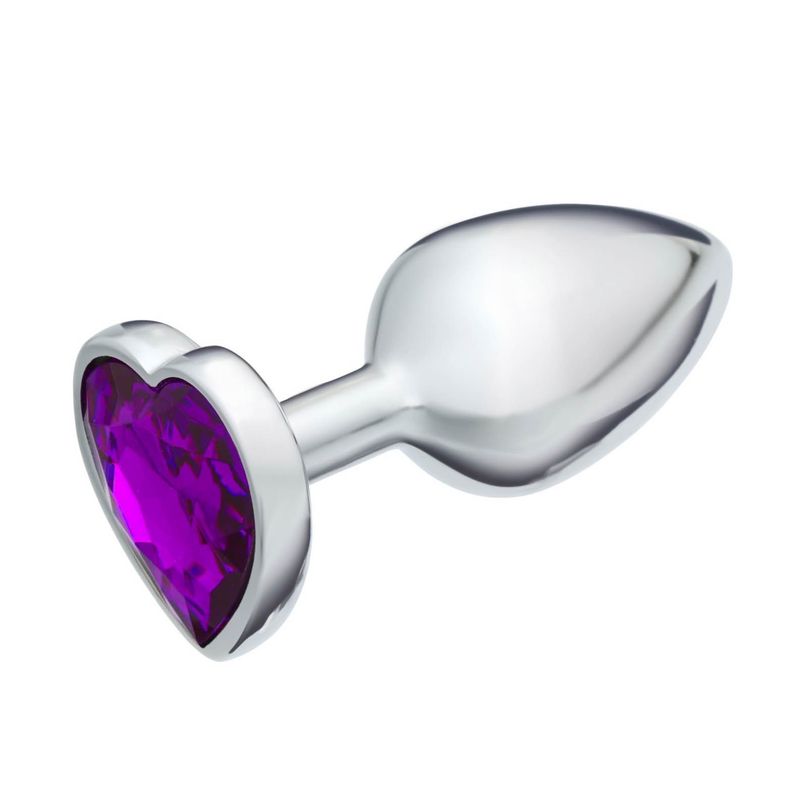 Анальная втулка Оки-Чпоки с кристаллом в форме сердца, S Ø 2,8 см, серебристый/фиолетовый — твой билет в мир незабываемых ощущений!