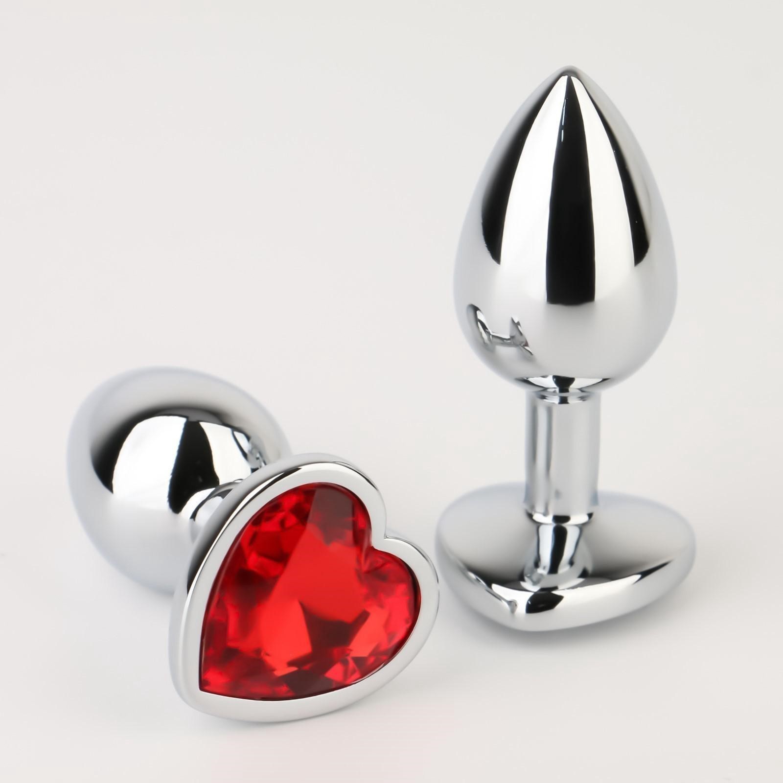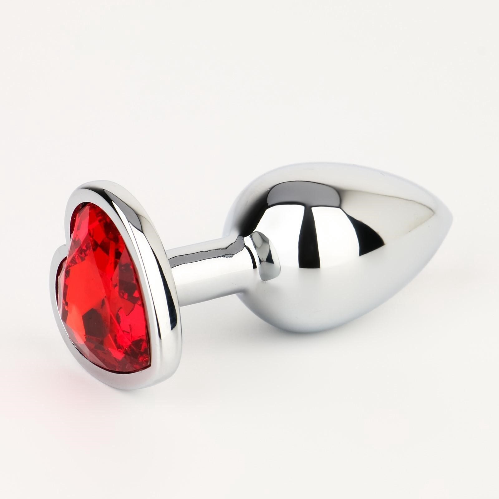 Анальная втулка Оки-Чпоки с кристаллом в форме сердца, S Ø 2,8 см, серебристый/красный — твой билет в мир страстных, пульсирующих удовольствий!