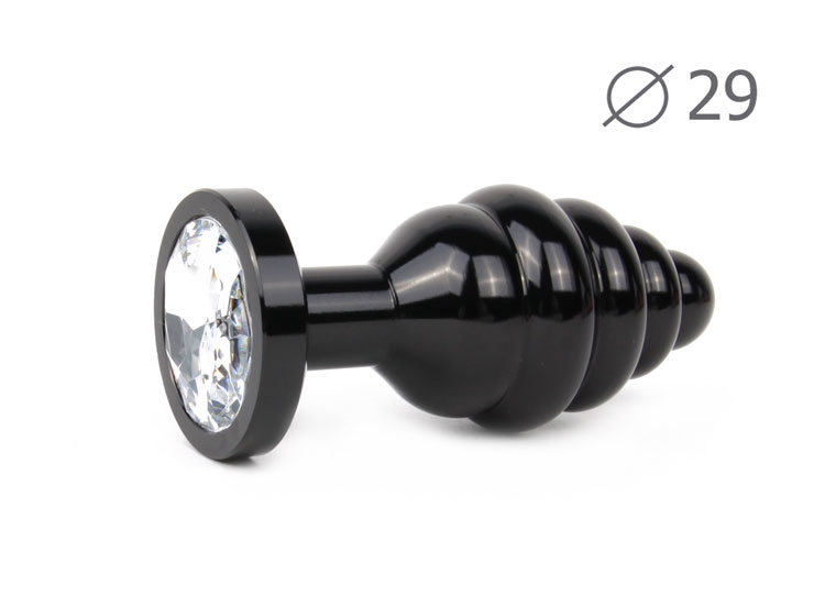 Анальная втулка Anal jewelry plugs, металл, M Ø3,4 см, черный-прозрачный