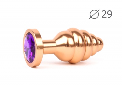 Анальная втулка Anal jewelry plugs, металл, S Ø 2,9 см, золотой-фиолетовый