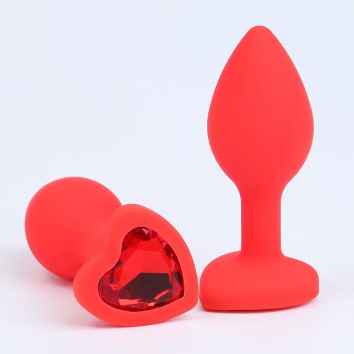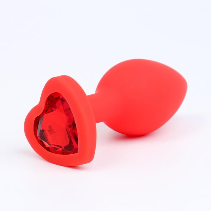 Анальная втулка, Сердечко, силиконовая, красная, 7,3 см, Ø 2,8 см