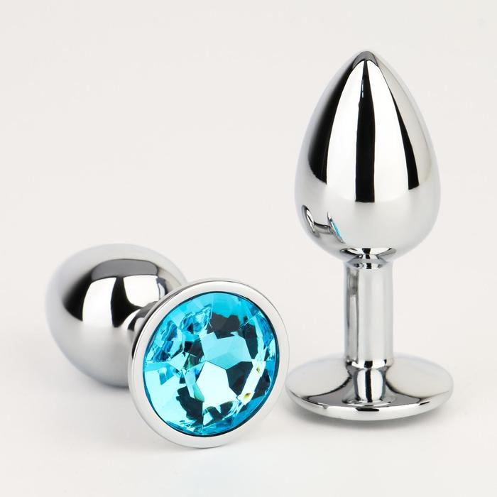 Анальная втулка, серебряная, с голубым кристаллом, 7 см, Ø 2,8 см — твой билет в мир ярких, пульсирующих ощущений!