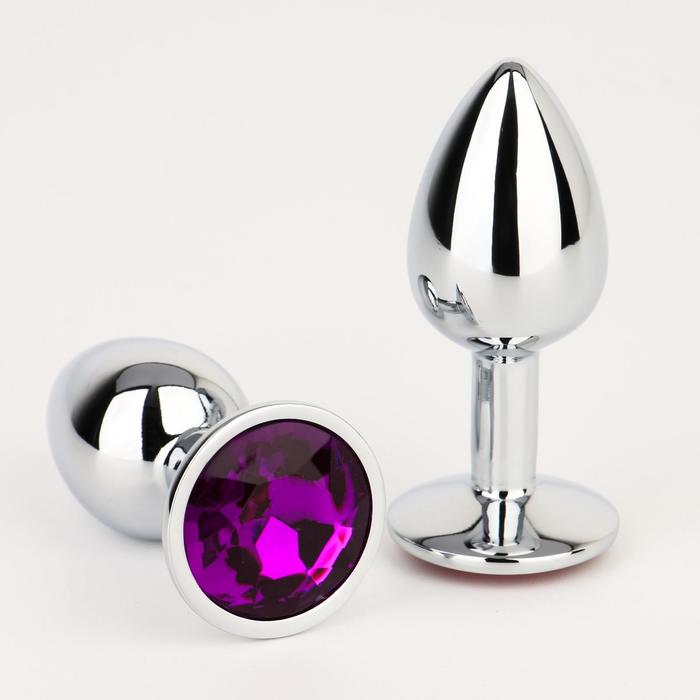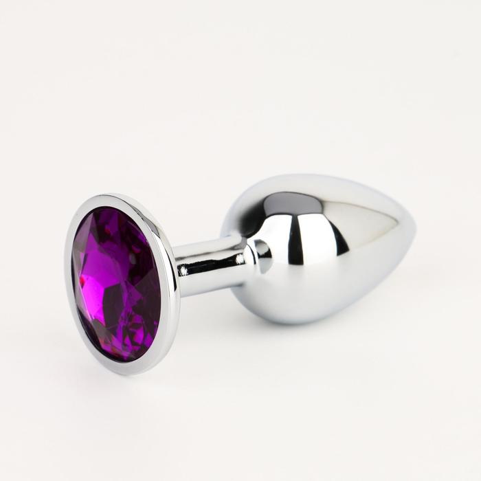 Анальная втулка, серебряная, с тёмно-фиолетовым кристаллом, 7 см, Ø 3,4 см