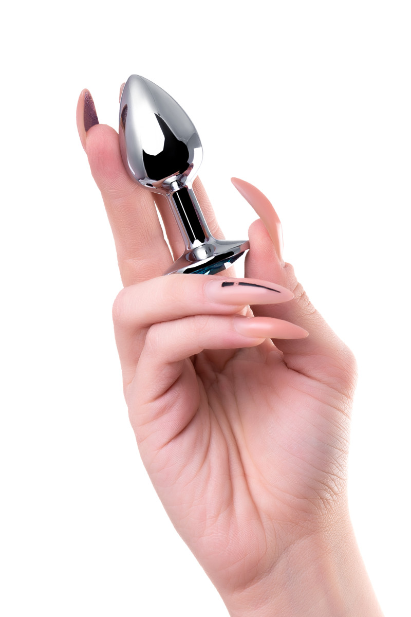 Анальная втулка Штучки-дрючки, металл, S Ø2,8 см, серебряный-топаз