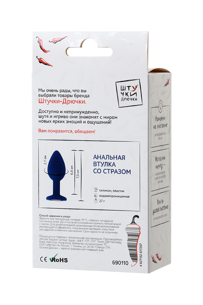В комплекте только сама анальная втулка Штучки-Дрючки из качественного силикона в синем и прозрачном исполнении — все, что нужно для твоих приключений, плюс рекомендации по уходу для долгого наслаждения!