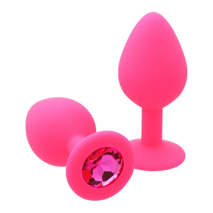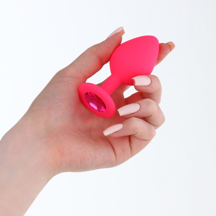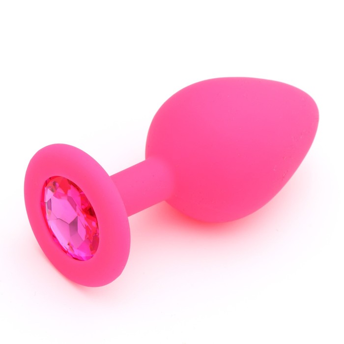 Анальная втулка, силиконовая, с розовым кристаллом, розовая, 8,0 см, Ø 3,5 см
