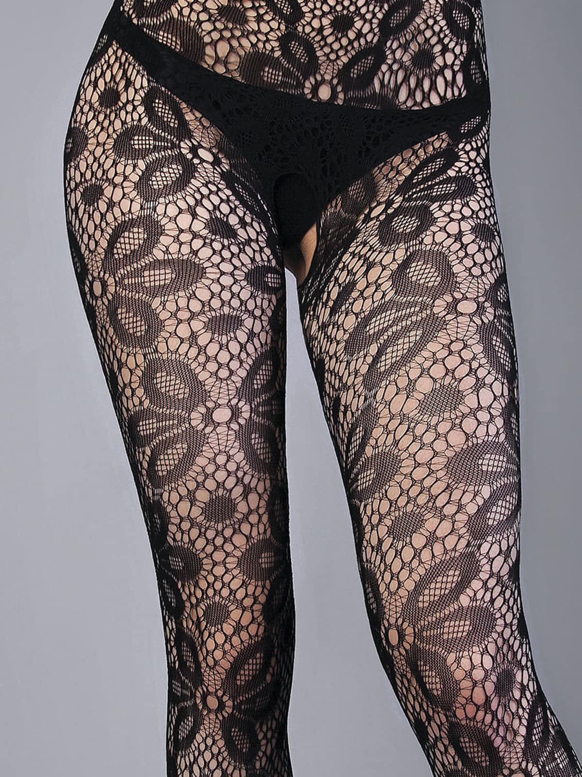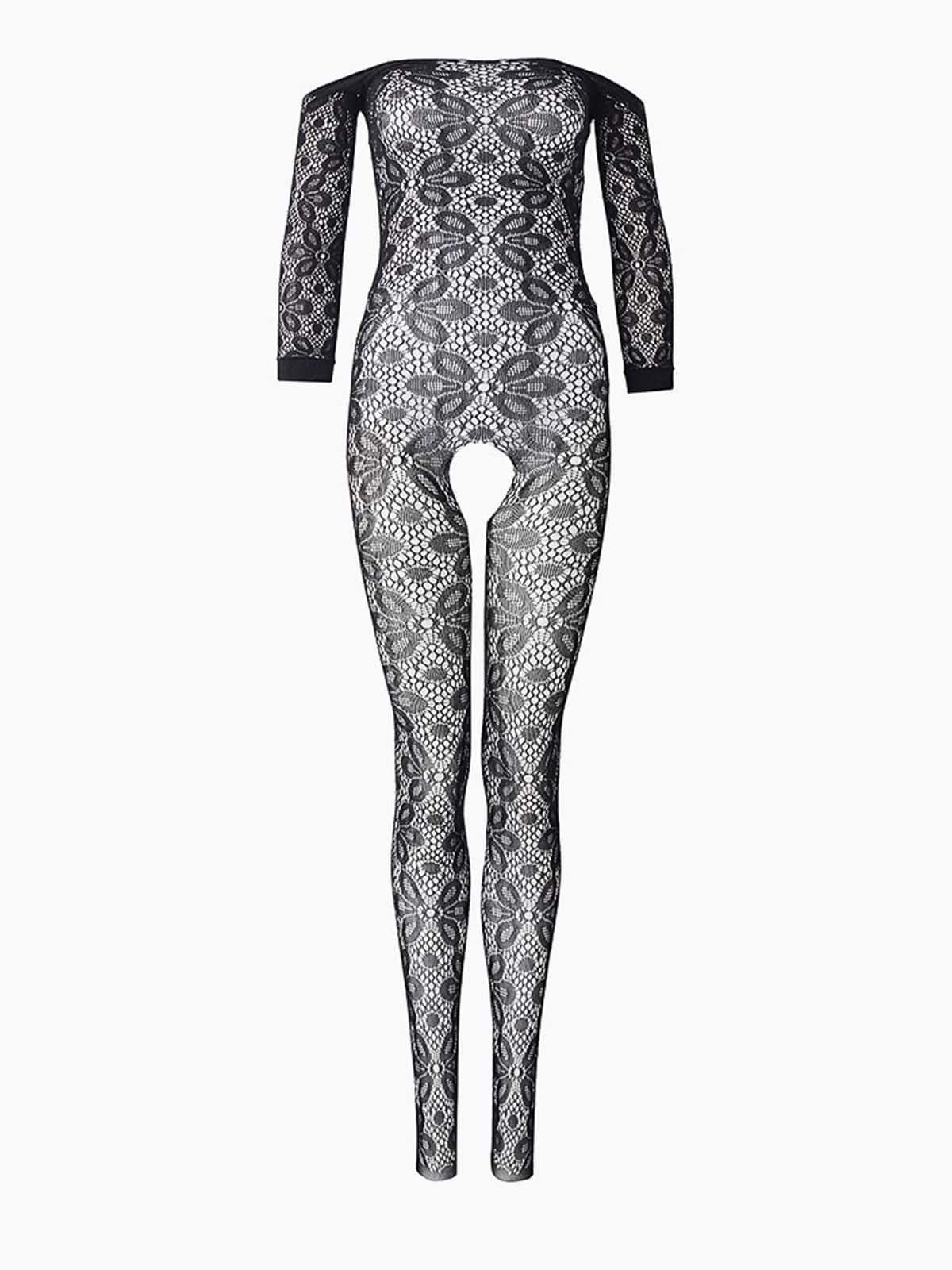 Боди-комбинезон черный с цветочным рисунком S-L — твой билет в мир соблазнительных ощущений!