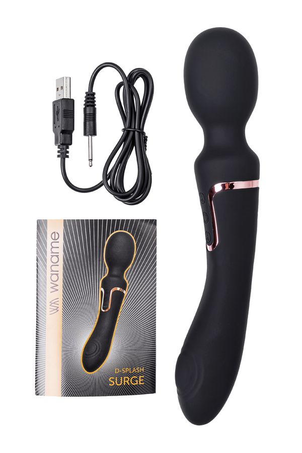 Двусторонний интимный массажер WANAME D-SPLASH Surge, силикон, черный, 22,5 см