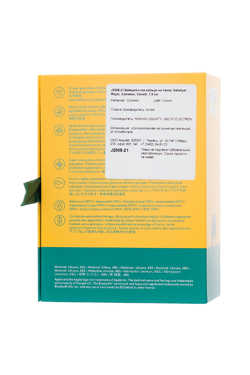 В набор входит одно эрекционное кольцо Satisfyer Royal из премиум-силикона в синем цвете, готовое к немедленному использованию. Все необходимое для вашего удовольствия — в одной упаковке!