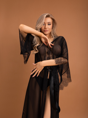 Просто надень его поверх белья или обнаженного тела — легкий шелк и кружево скользнут по коже, создавая идеальный образ для романтического вечера. Он идеален для прелюдии, усиливая ощущения и добавляя нотку элегантности в твои моменты близости.