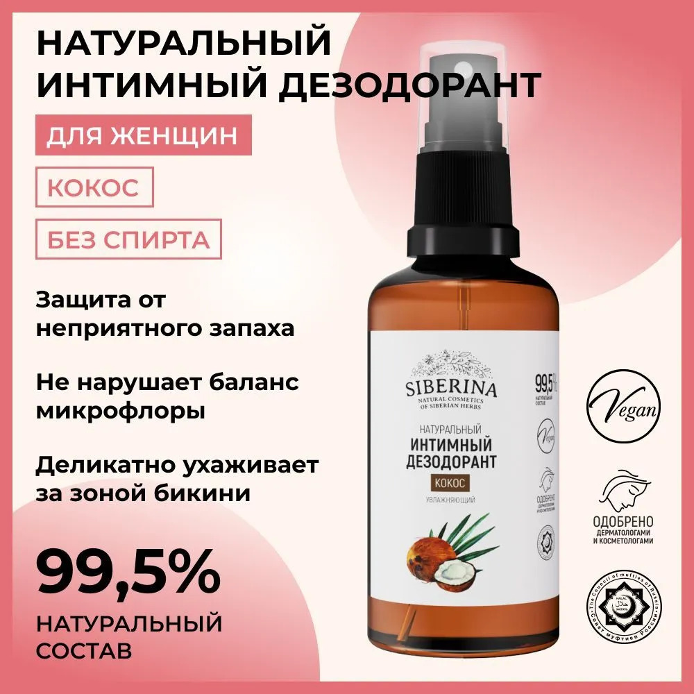 Уход за Интимным дезодорантом спреем Siberina с ароматом кокоса