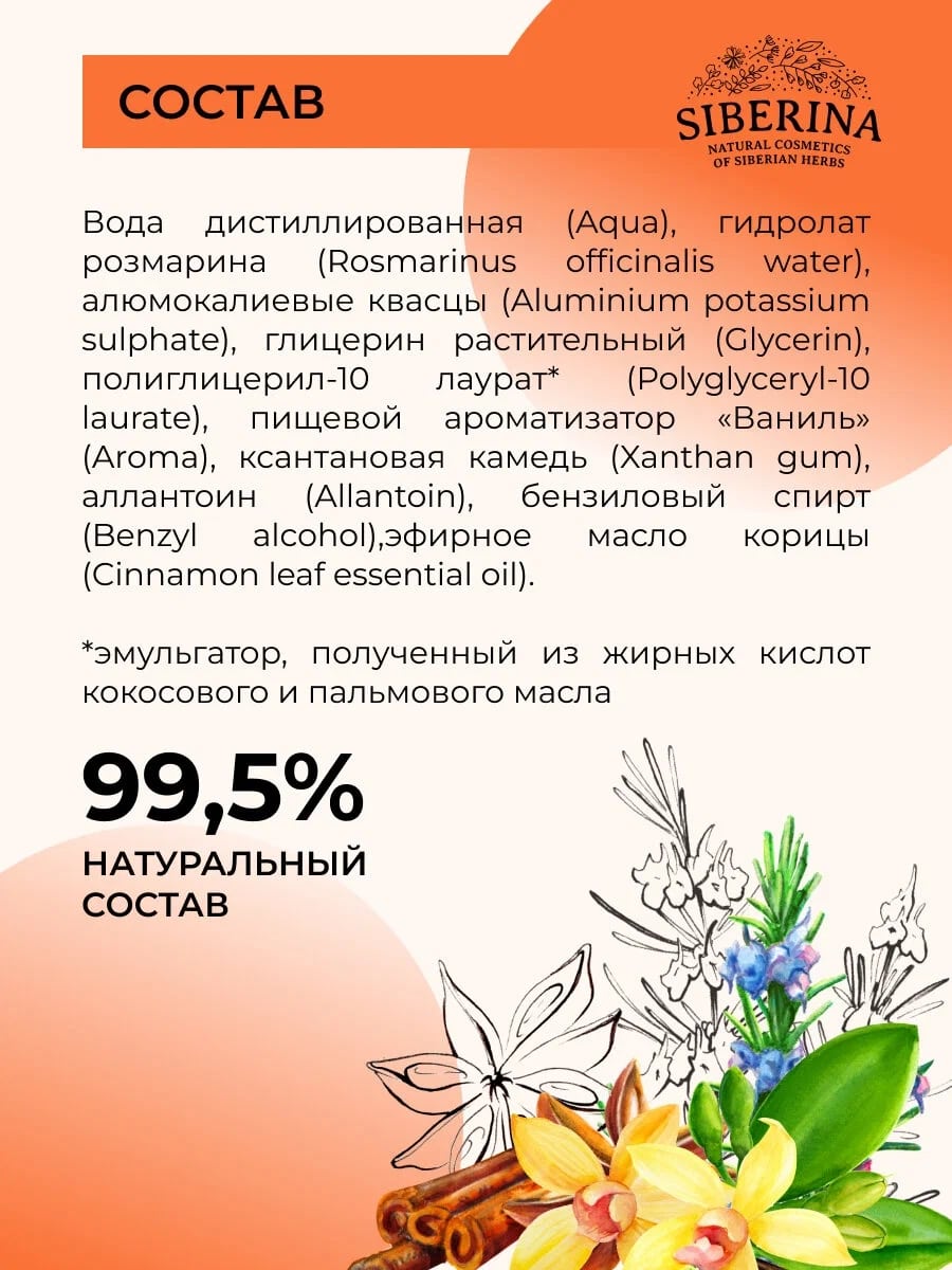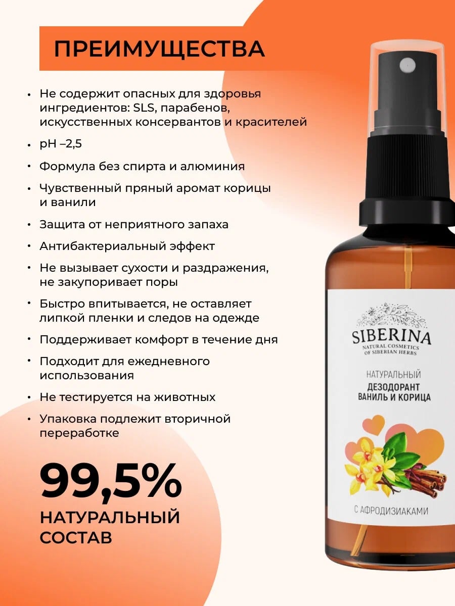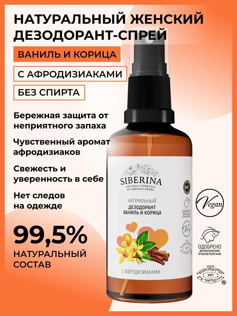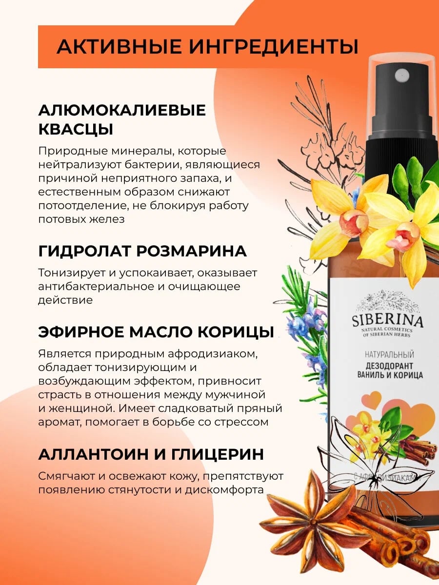 Интимный дезодорант спрей Siberina ваниль и корица, 50 мл — твой секретный аромат для незабываемых моментов страсти!