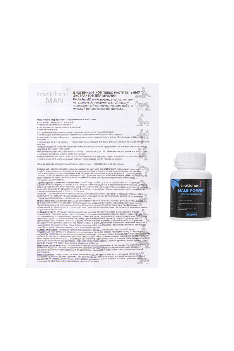 Капсулы возбуждающие для мужчин Erotichard, MALE POWER, 20 капсул