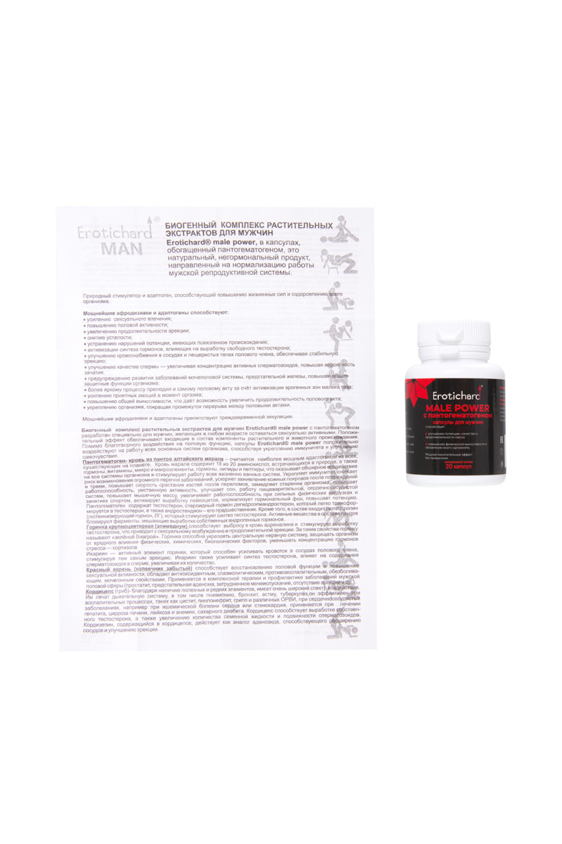 Капсулы возбуждающие для мужчин Erotichard, MALE POWER с пантогематогеном, 20 капсул