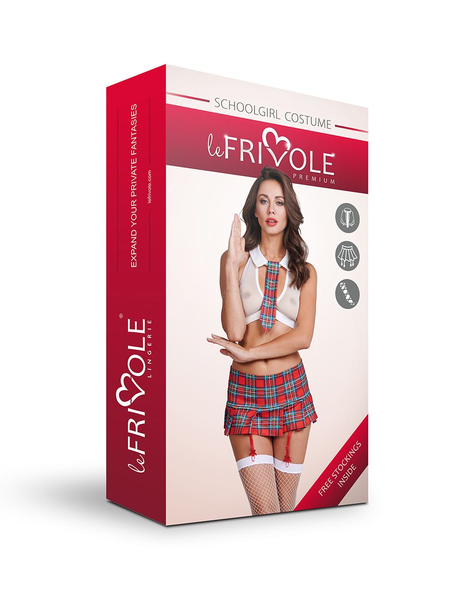 В набор входит все необходимое: короткая клетчатая юбка, белая блузка, красный галстук и высокие гольфы. Полный образ для полного погружения в удовольствие!