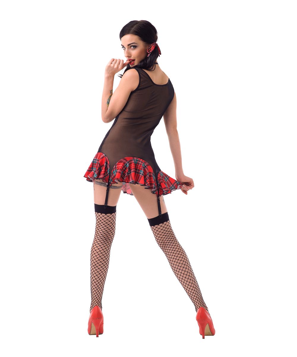 В комплекте: клетчатая юбка, белая блузка, галстук, очки и чулки. Все элементы созданы для максимального эффекта — просто распакуй и начни приключение!