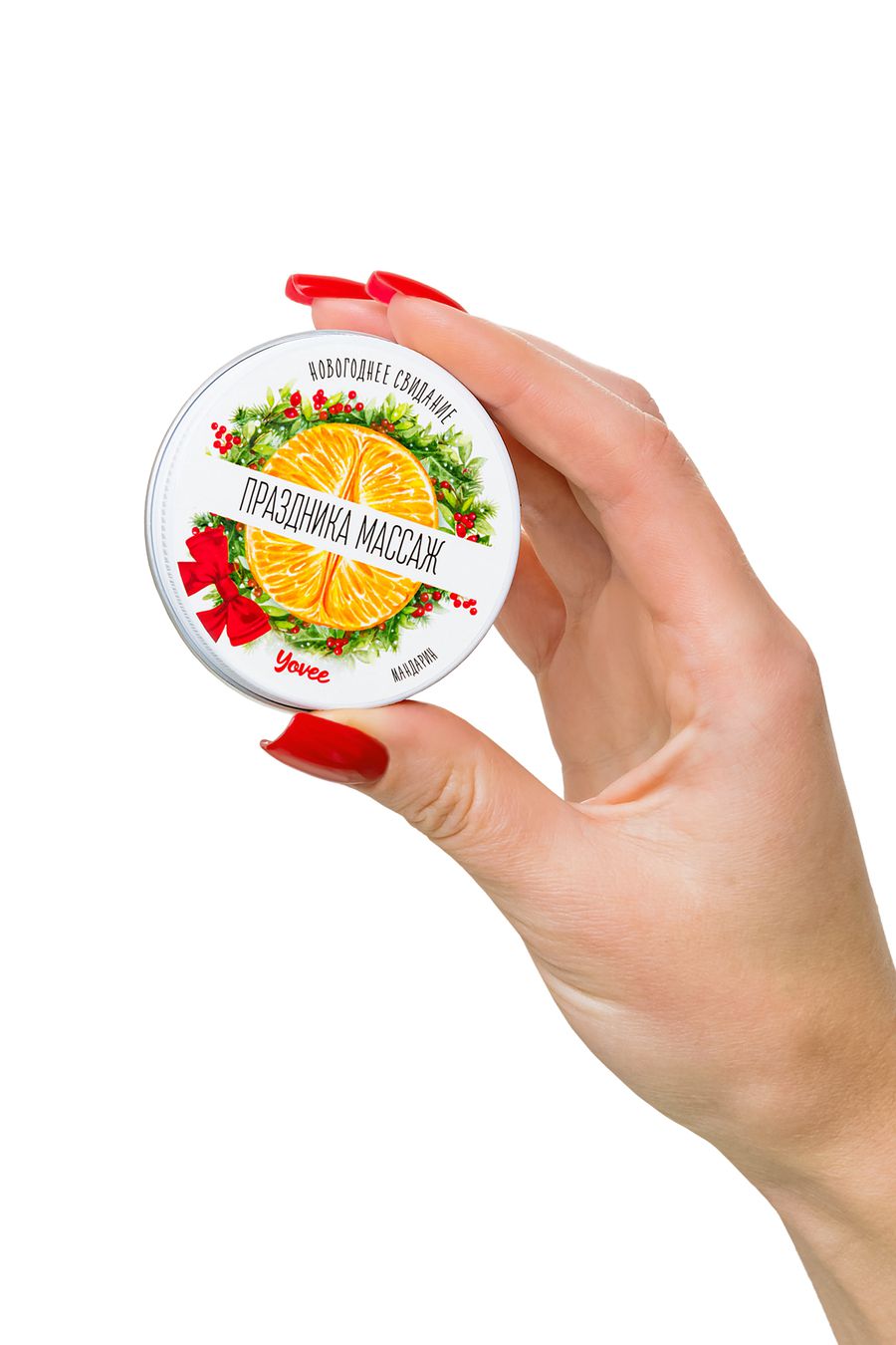 Массажная свеча новогодняя Yovee «Праздника массаж» с афродизиаком, мандарин, 30мл — твой билет в мир новогодних искр страсти и нежных прикосновений!