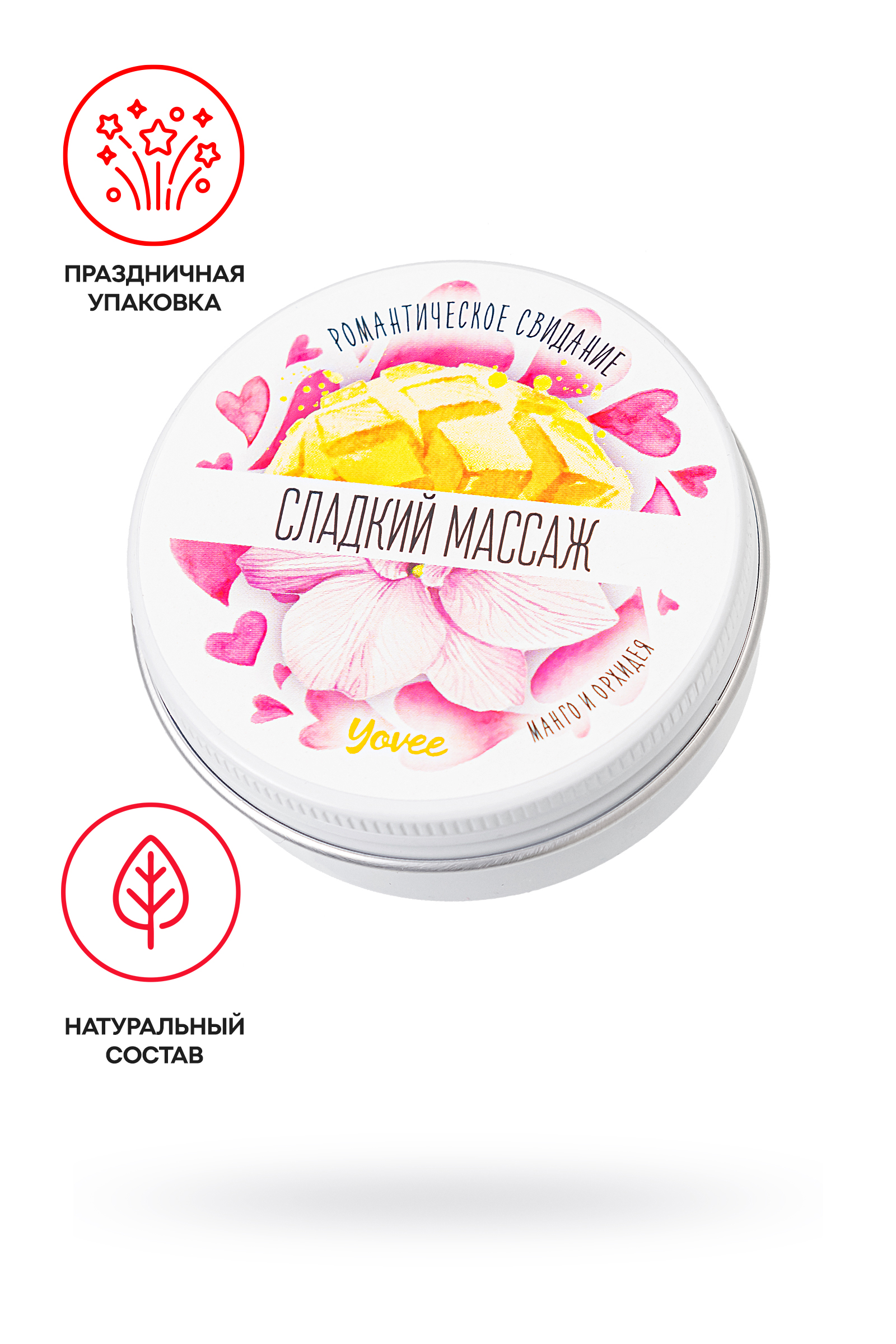 Массажная свеча романтическая Yovee «Сладкий массаж», манго и орхидея, 30 мл — твой билет в мир незабываемых ощущений!