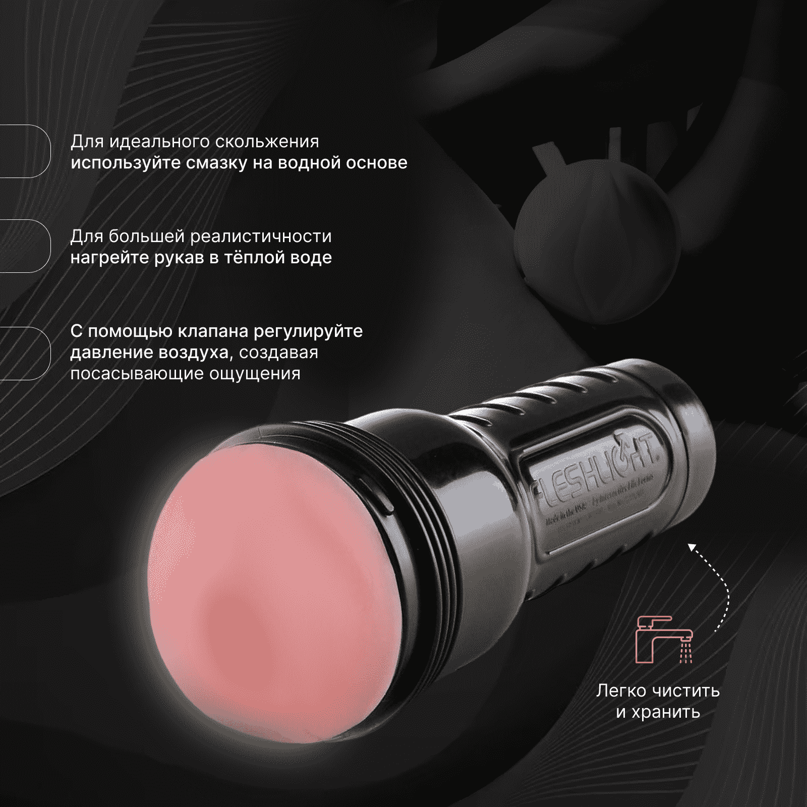 После использования тщательно промой теплой водой с мягким мылом, высуши и посыпь тальком для свежести. Для профессионального ухода рекомендуем специальные средства для ухода — так твоя игрушка всегда будет готова к новым волнам удовольствия без риска износа.