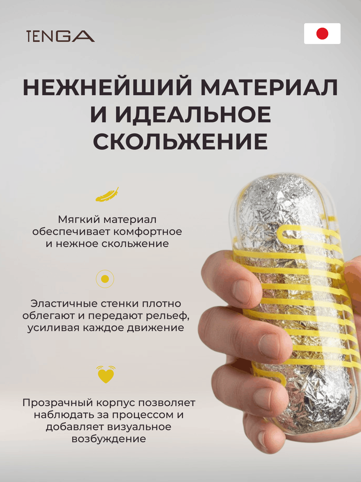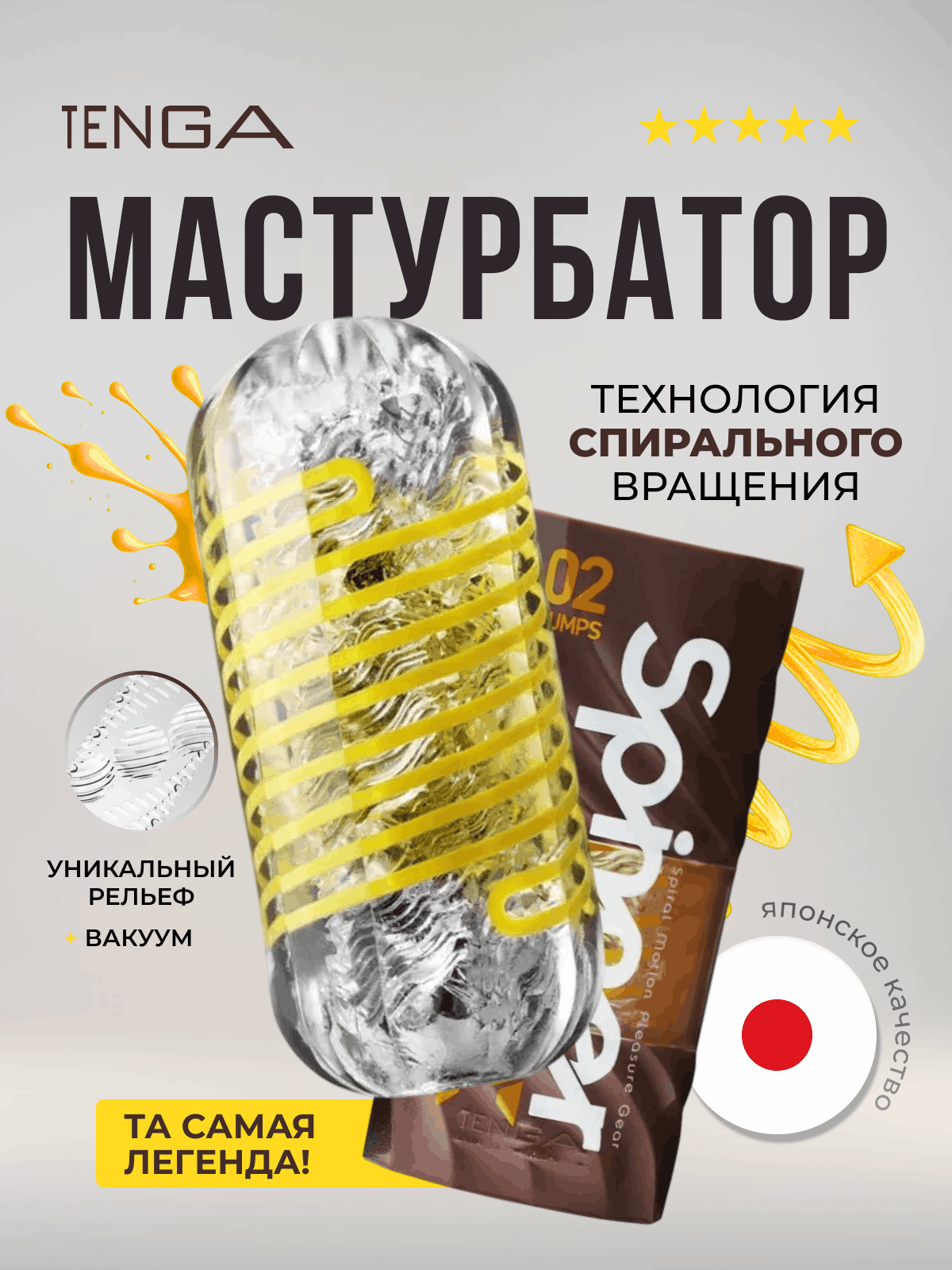 В набор также входит пакетик фирменного лубриканта Tenga и специальная подставка для сушки эластомерного рукава.
