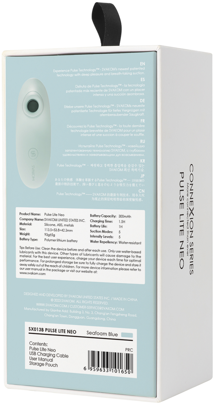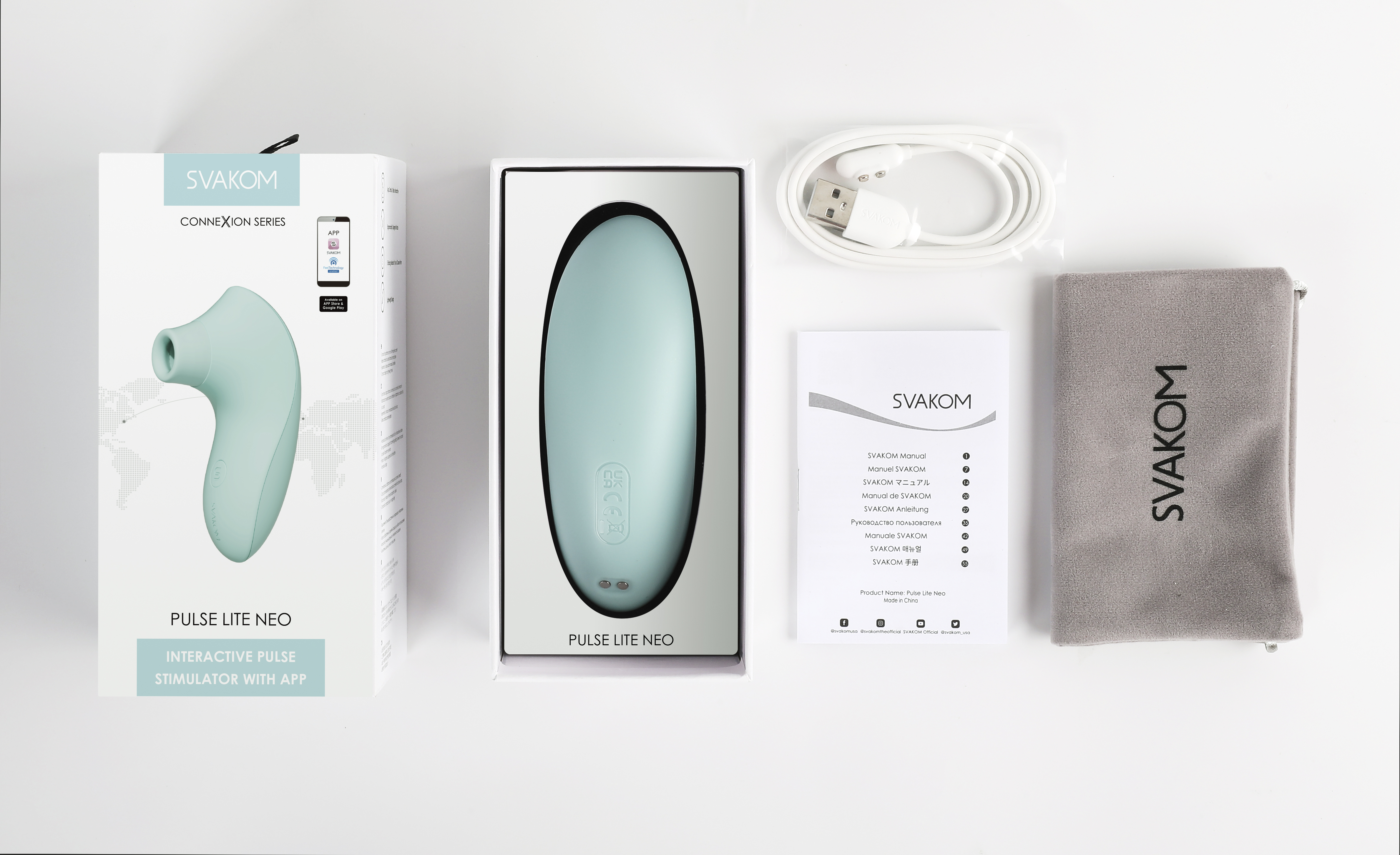 В набор входит сам стимулятор в цвете seafoam blue, USB-кабель для зарядки, инструкция по использованию и стильная коробка. Все готово для твоего первого погружения в мир волн экстаза!