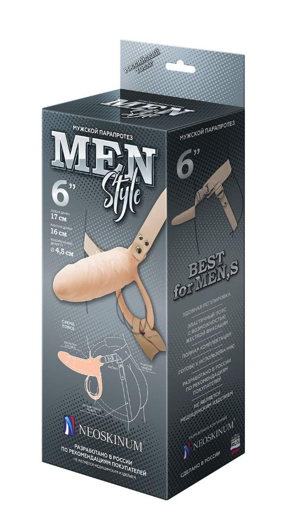 Уход за Мужским фаллопротезом MEN STYLE L 16см, Ø 4,7 см