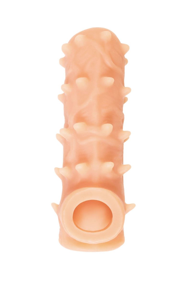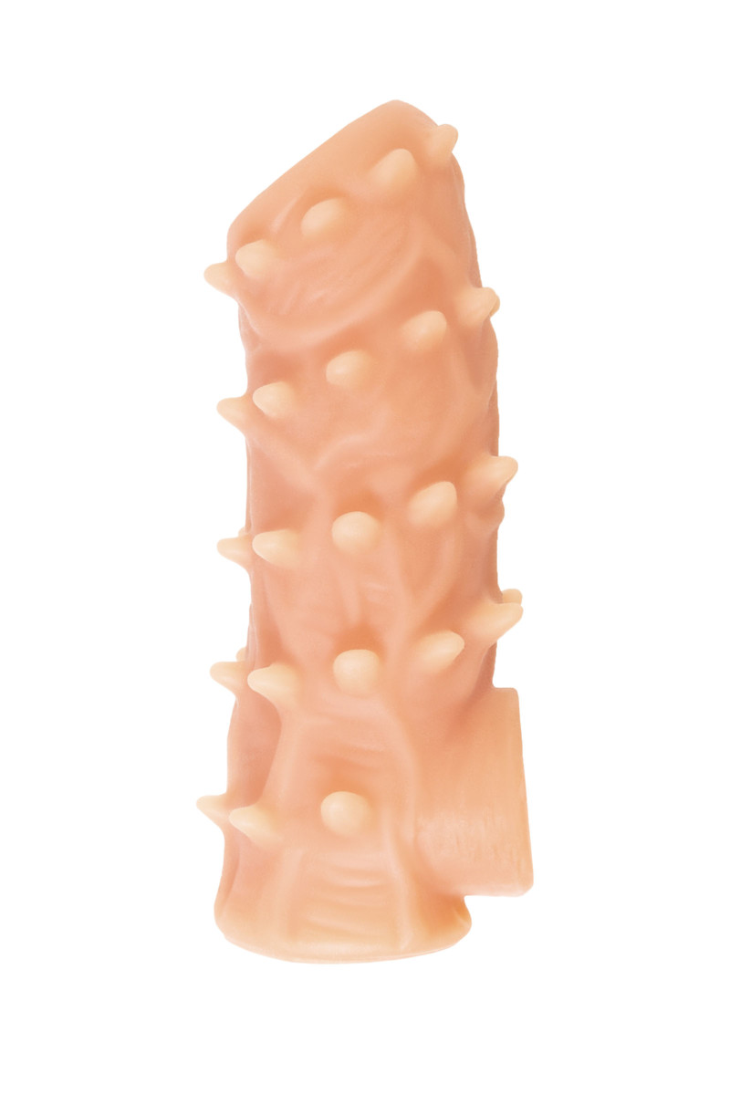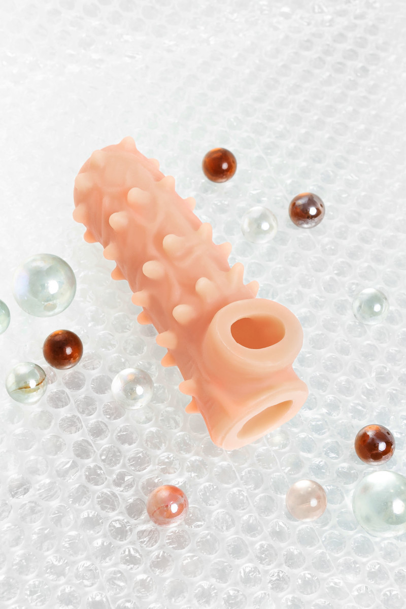 Насадка просто надевается на эрегированный пенис благодаря эластичному силикону — она растягивается для удобной посадки и фиксируется естественным образом. Используйте ее во время секса для усиления стимуляции, и почувствуйте, как шипы добавляют новые грани удовольствия в каждое движение!