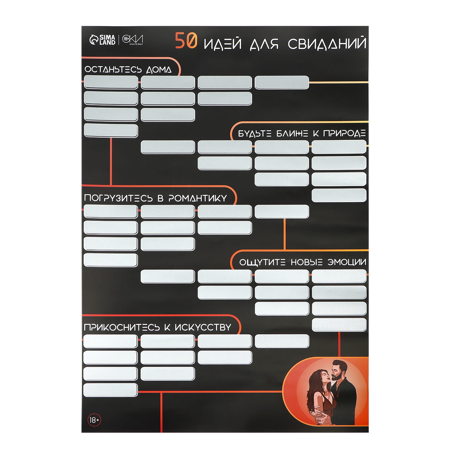 Плакат для двоих со скретч-слоем «50 идей для свиданий», А3, 18+