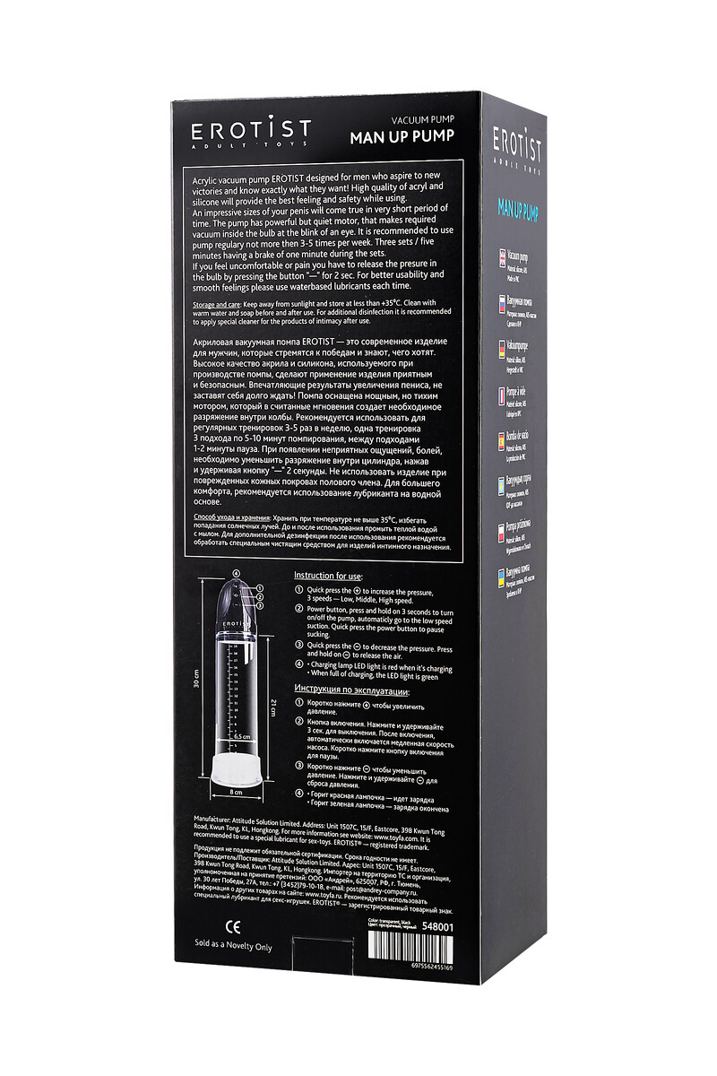 Массажер для мужчин, которые стремятся к победам помпа Erotist Man повышает качество эрекции и стабилизирует потенцию, улучшает кровообращение, тонус сосудов и эластичность тканей пениса.