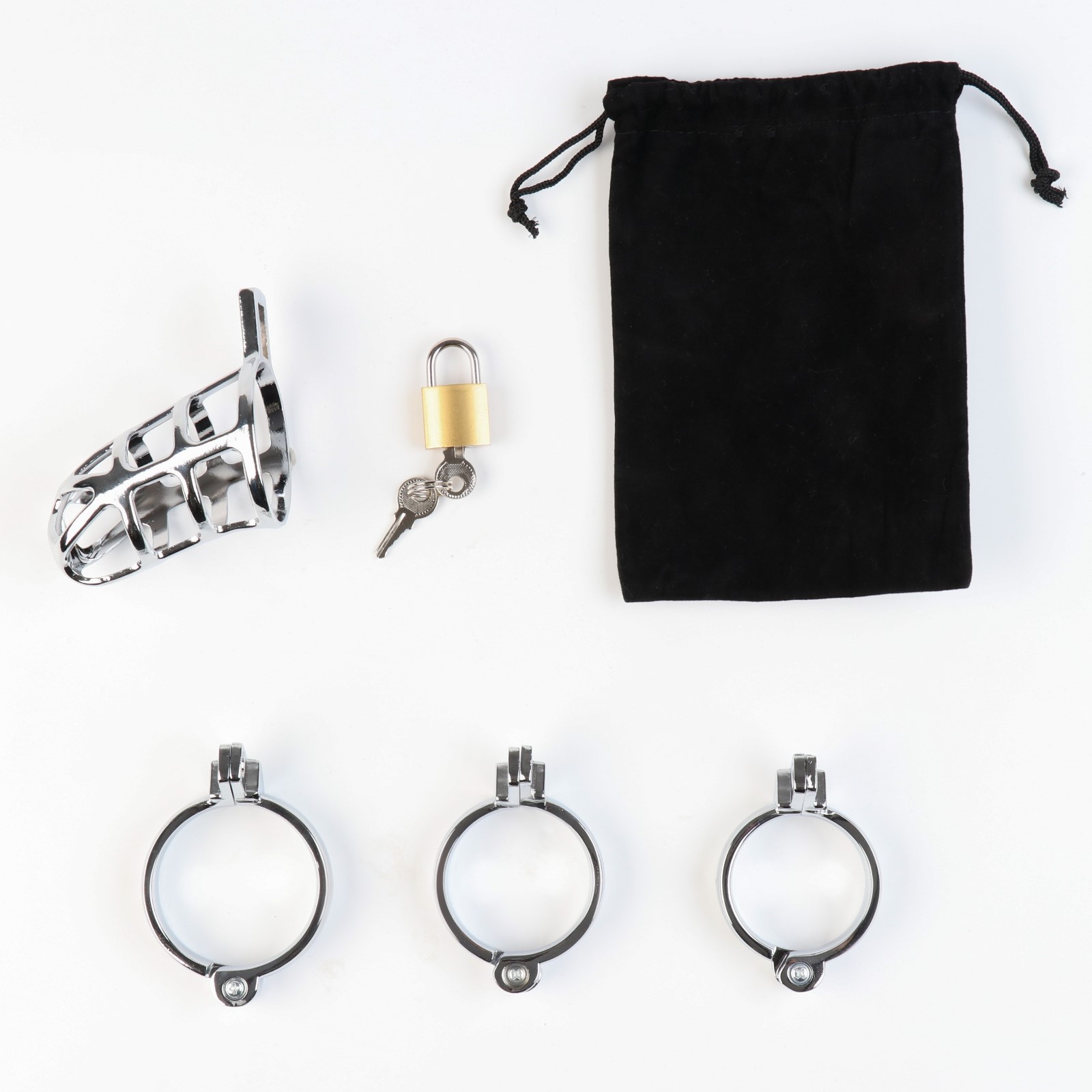 Пояс верности «Клетка целомудрия № 2», кольца d=4; 4.5; 5 см, замок, ключ, металл