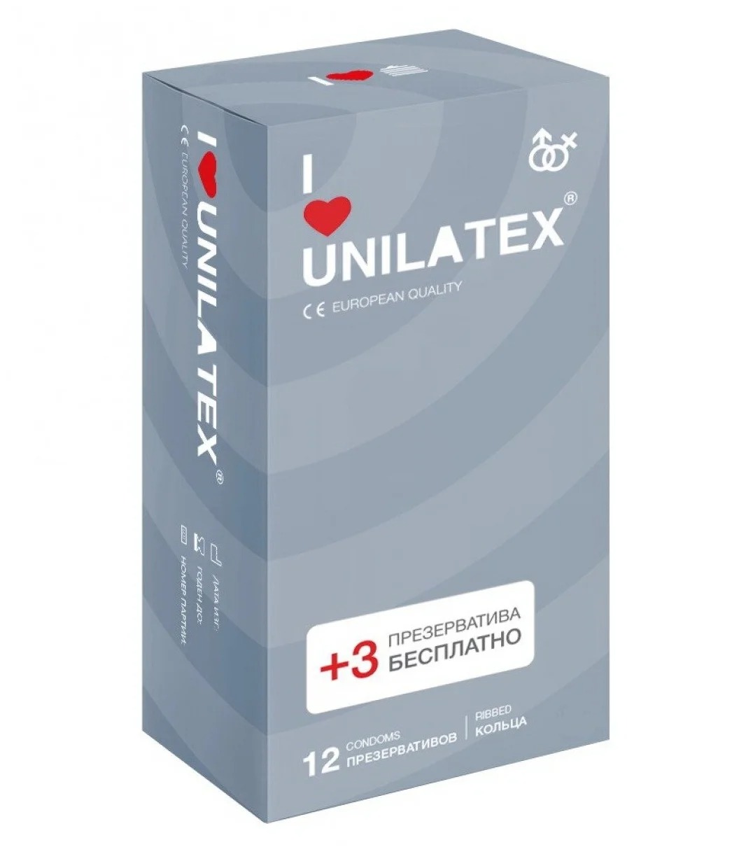 Презервативы Unilatex Ribbed с рифленой поверхностью, № 12 шт + 3 шт в подарок
