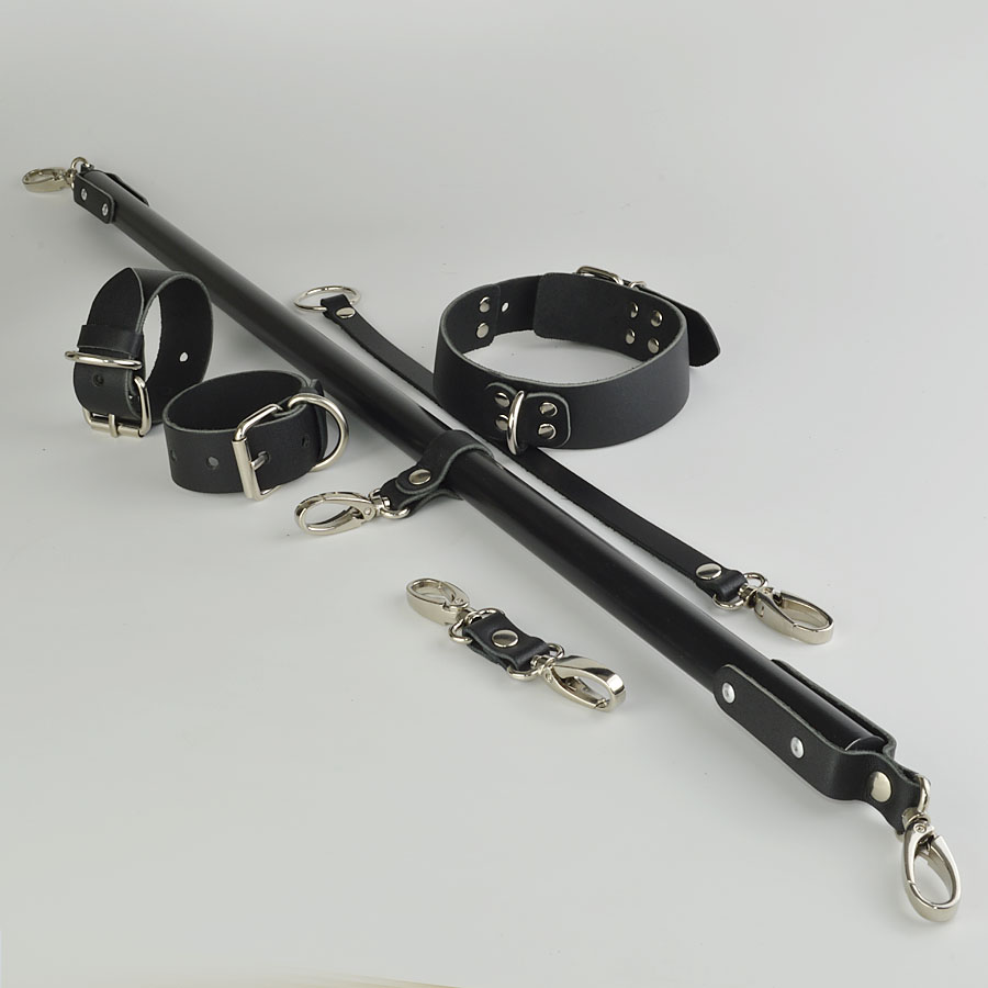 Набор использует регулируемые ремни и клипсы для надежной, но комфортной фиксации. Распорка легко настраивается под размер, наручники и ошейник фиксируются быстро — просто подтяни и наслаждайся полным контролем над ощущениями!