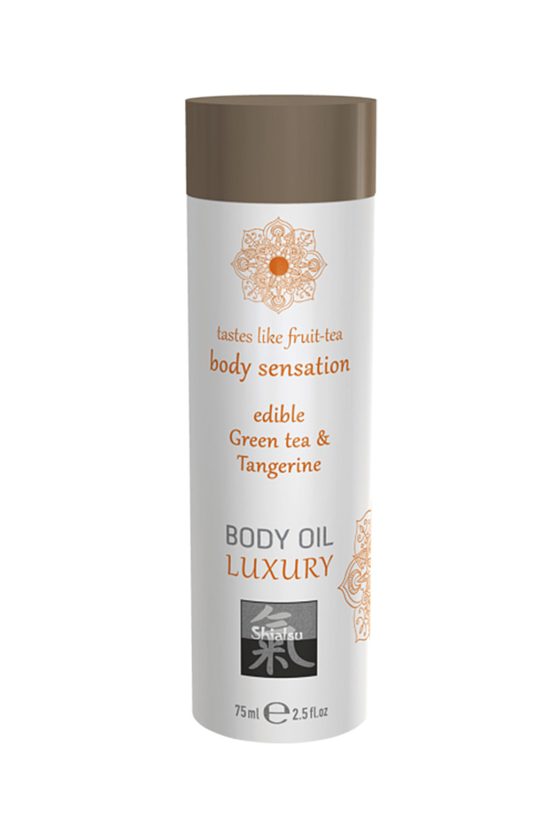 Съедобное масло для тела - Зеленый чай и мандарин, 75 мл — твой билет в мир незабываемых ощущений!