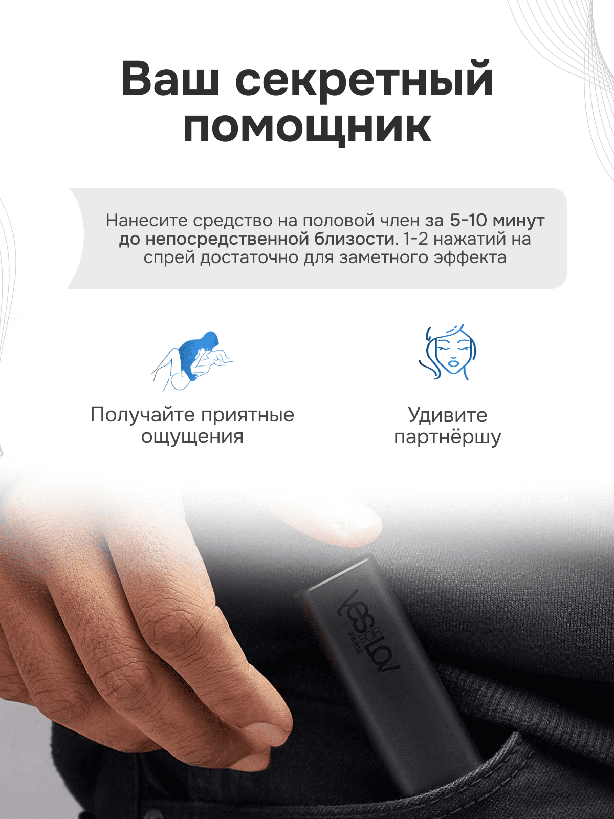 Распыли и почувствуй, как нежная формула мягко снижает чувствительность, продлевая твое наслаждение часами. Это магия, которая делает каждую секунду незабываемой!