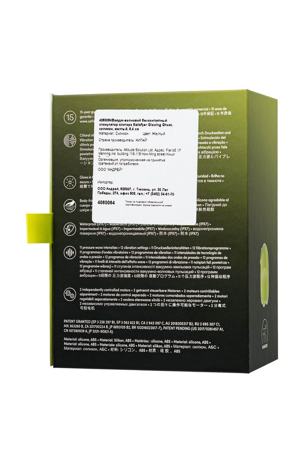 Представь: нежный желтый призрак, который оживает в темноте, пульсируя мягким свечением и вибрацией, чтобы подарить тебе волны неудержимого удовольствия. Этот вакуумный стимулятор клитора от Satisfyer — компактный (всего 8,4 см) и мощный помощник для твоих самых сокровенных фантазий. С гарантией 12 месяцев он обещает надежность и яркие эмоции каждый раз!