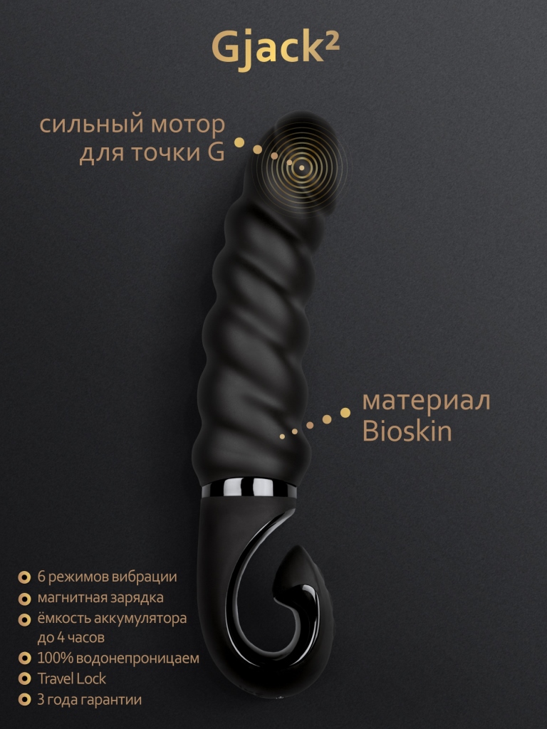 Погрузись в океан ярких эмоций с вибратором Gvibe Gjack 2! Этот стильный черный красавец сочетает мощь и элегантность, даря волны удовольствия, которые захватывают с первой секунды. Идеален для тех, кто жаждет интенсивных ощущений и новых высот наслаждения — добавь искру в свою интимную жизнь прямо сейчас!