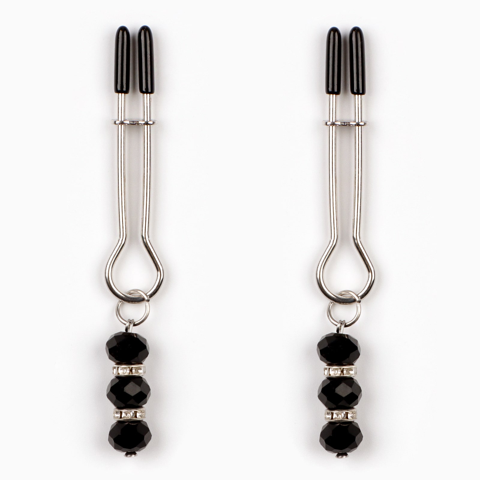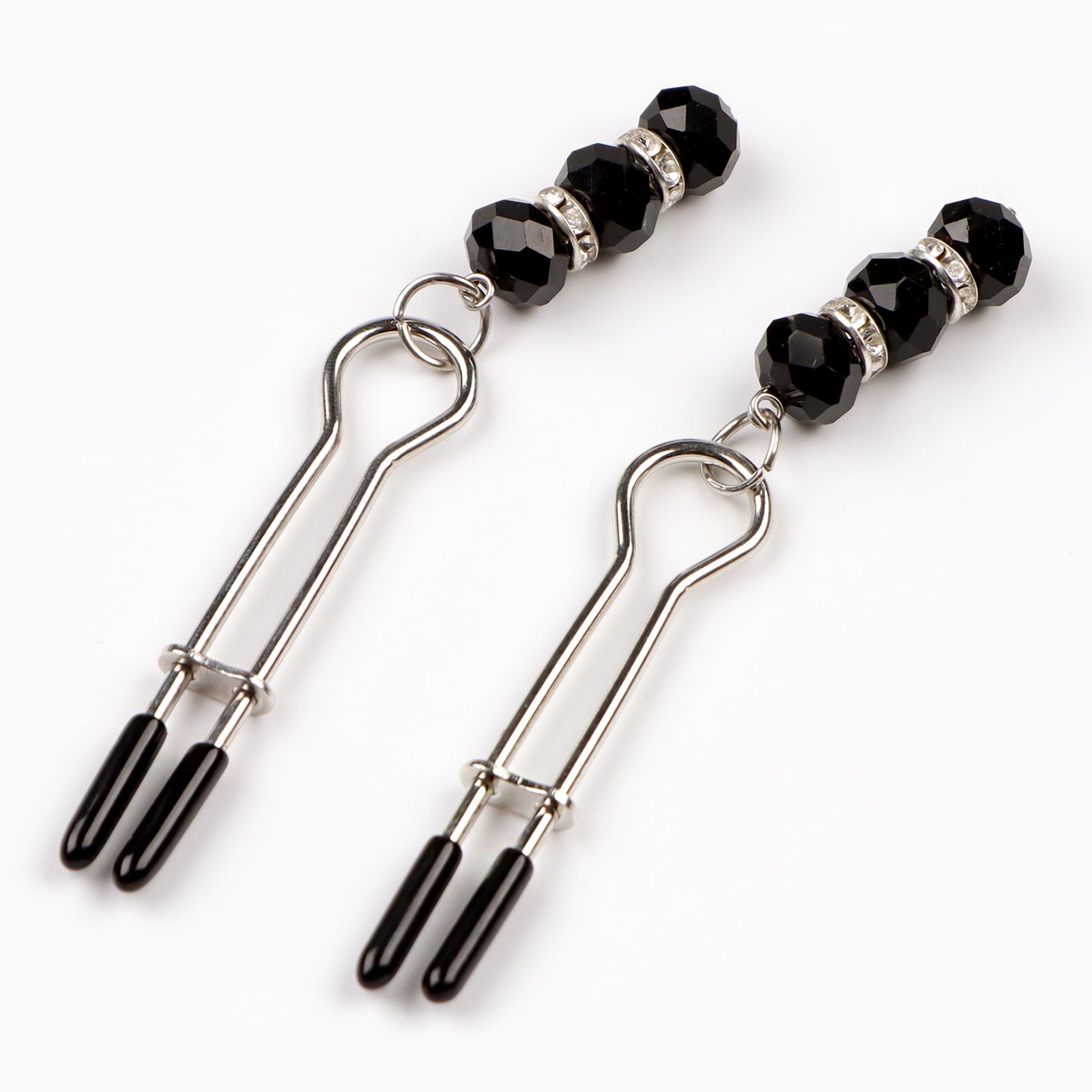 Зажимы для сосков БДСМ аксессуар, с бусинами, металл, пластик, черный