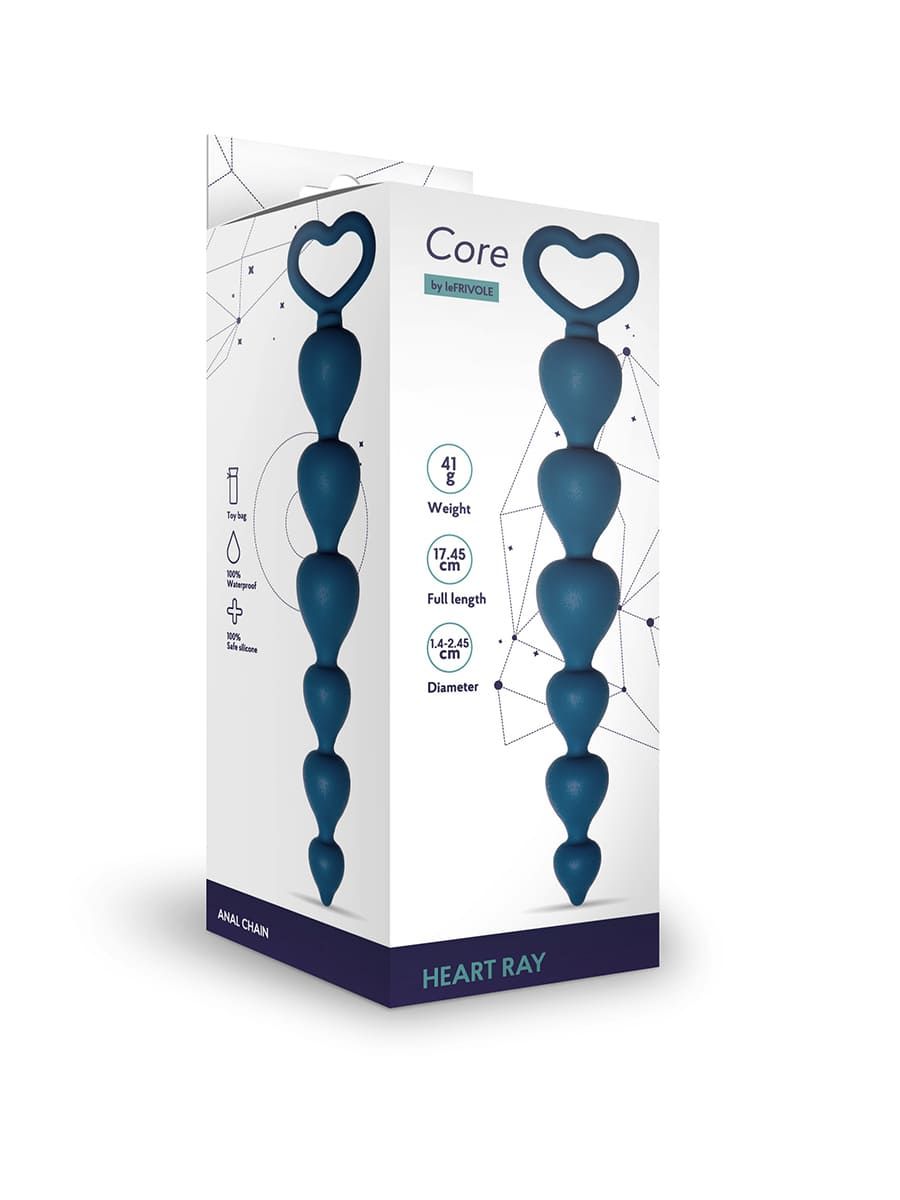 В набор входит сама анальная цепочка Heart Ray длиной 17,5 см в кобальтовом цвете — все готово к твоим приключениям! Для полного комфорта добавь смазку из нашего ассортимента и наслаждайся без забот.