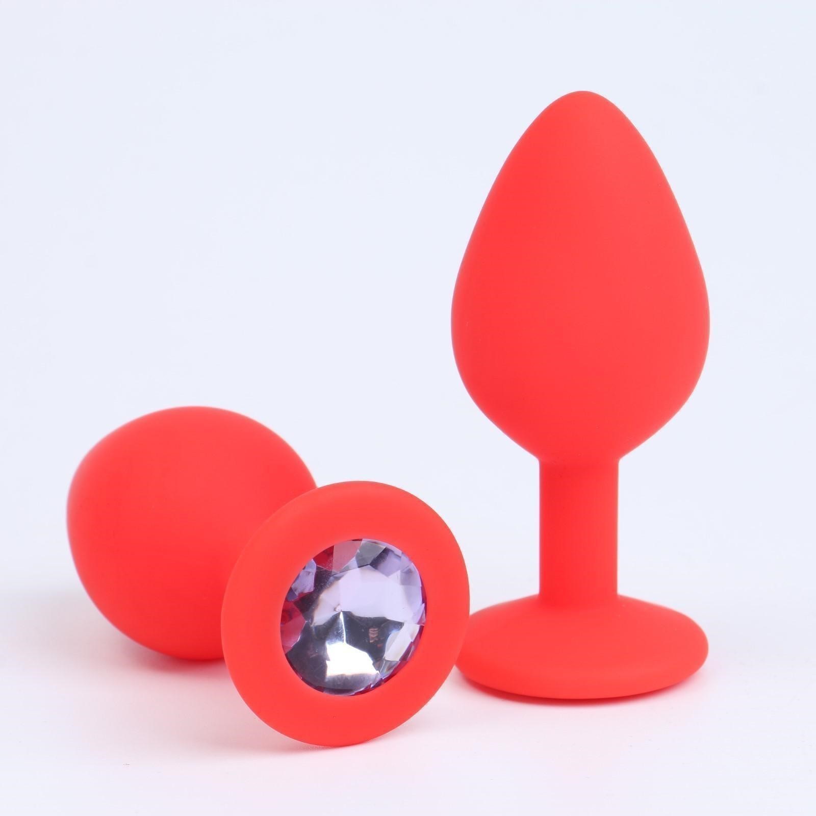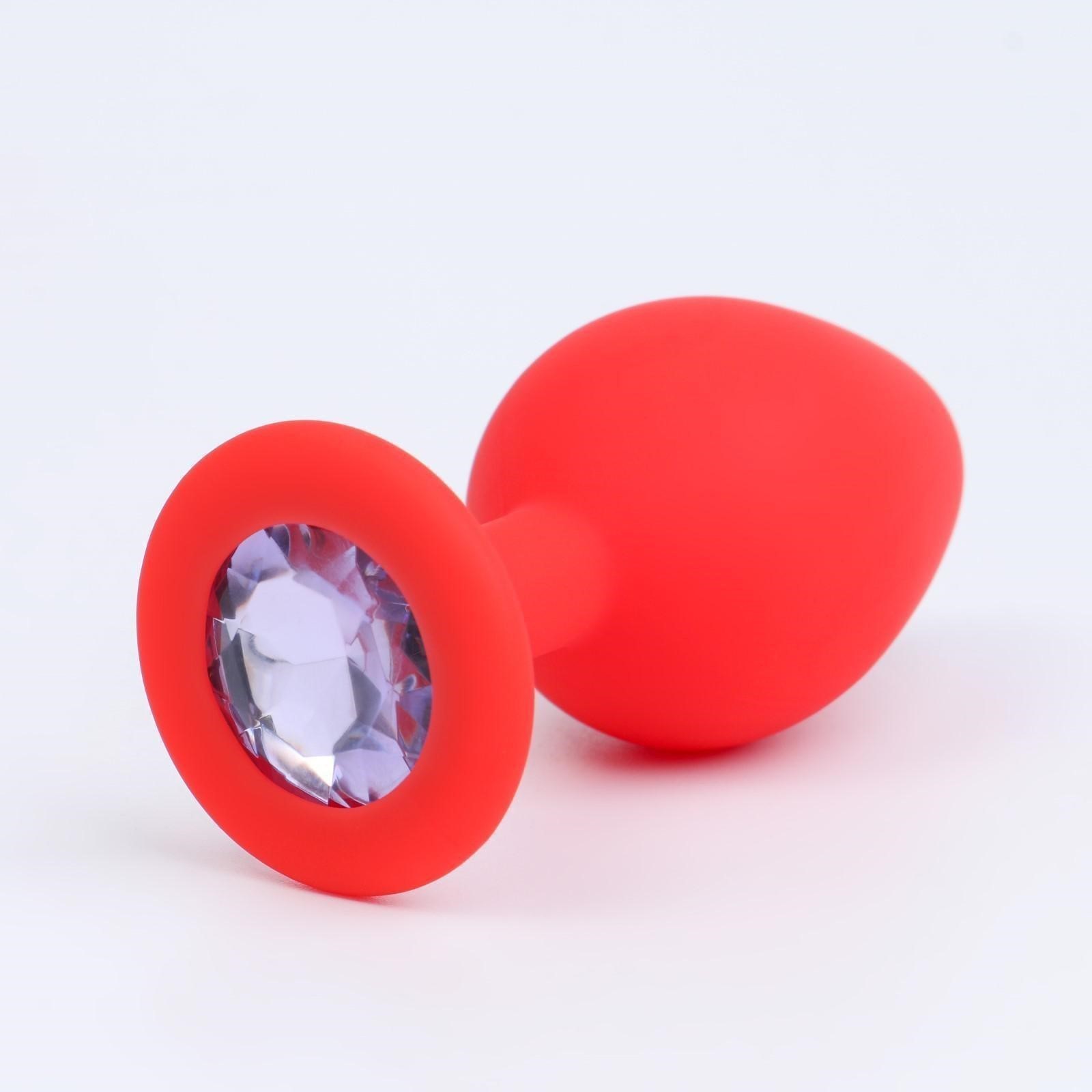 Анальная втулка Оки-Чпоки с кристаллом, без вибрации, Soft силикон, L 4 см, красный/фиолетовый