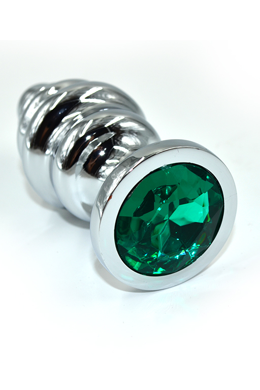 Анальная втулка Kanikule Plugs, металл, М Ø 3,5 см, серебряный-зеленый