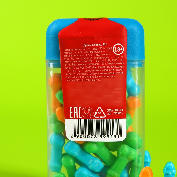 В удобной банке 20 г — полная порция драже, готовых к использованию. Просто открой и дай волне сладкого удовольствия захватить тебя и твоего партнера.