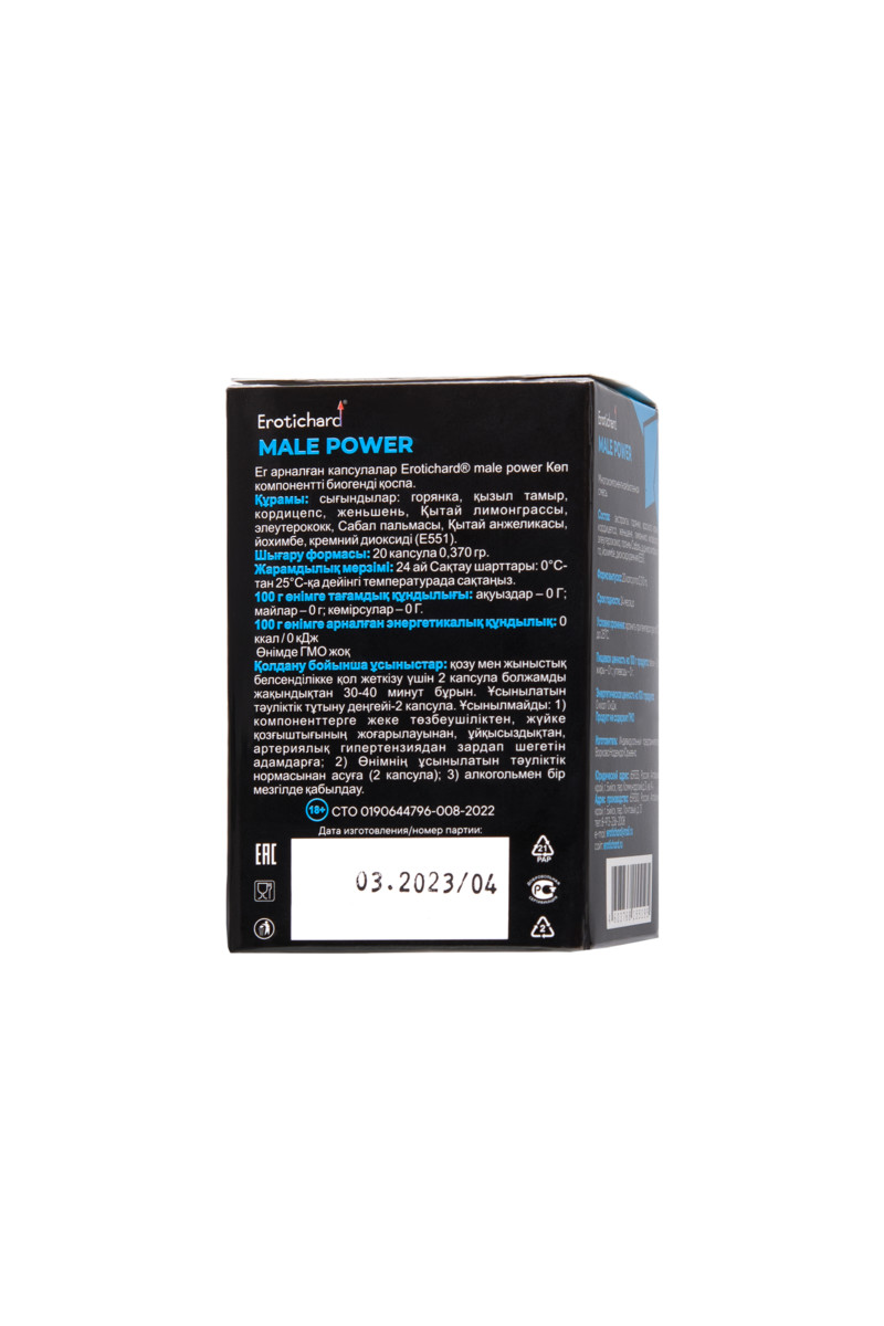 В упаковке 20 капсул в удобной баночке — хватит на месяц приливов страсти! Храни в прохладном, сухом месте, вдали от детей, чтобы твоя MALE POWER всегда была на пике.
