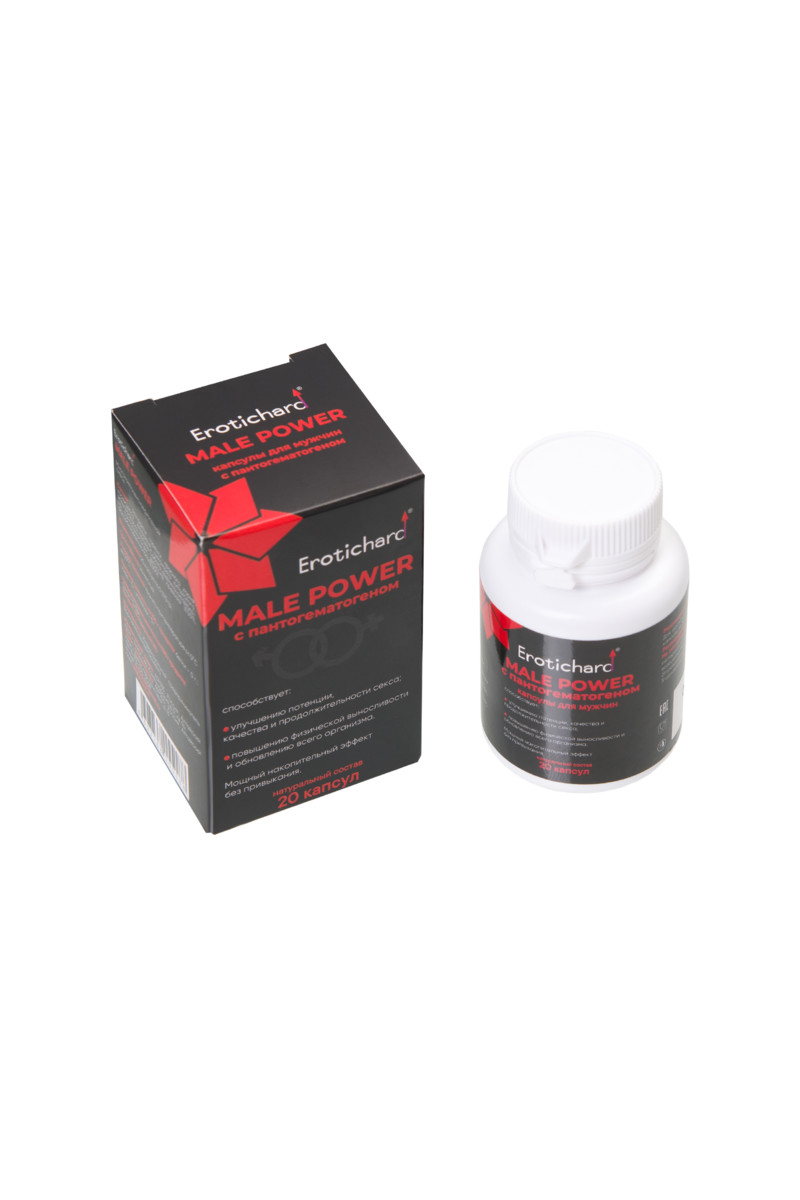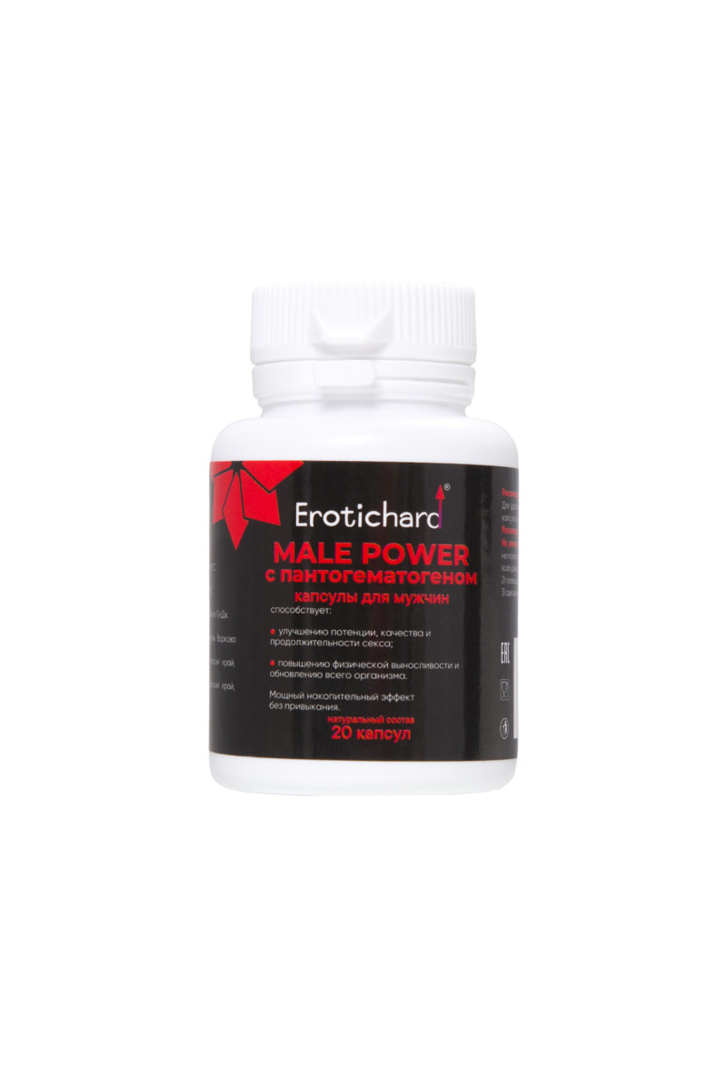 Капсулы возбуждающие для мужчин Erotichard, MALE POWER с пантогематогеном, 20 капсул — твой билет в мир взрывного удовольствия и неукротимой силы!