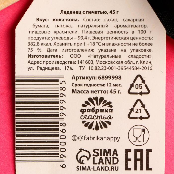 Часто задаваемые вопросы о Леденец с печатью «Sosat», вкус: кола, 45 г