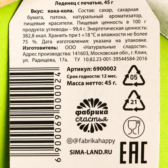 Уход за Леденец с печатью «Соси меня», вкус: кола, 45 г