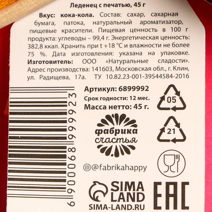 Леденец с печатью «Соси прощения», вкус: кола, 45 г