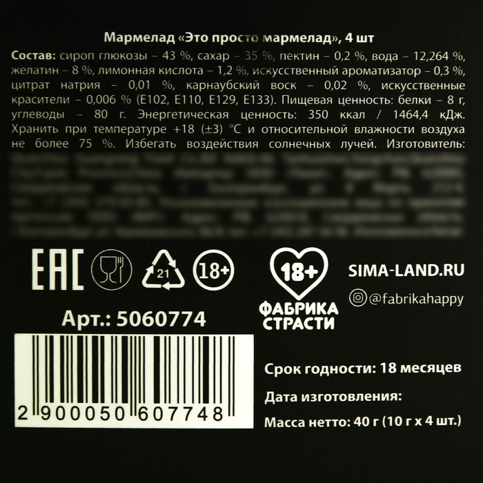 Мармелад «Это просто мармелад», 9 г. х 4 шт. — сладкий секрет для взрывного удовольствия!